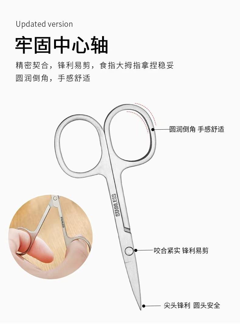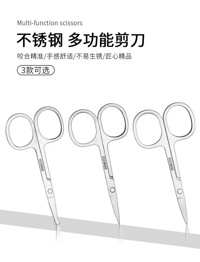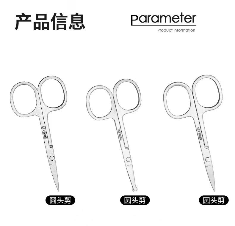 Tijeras para Recortar Cejas de Acero Inoxidable Transfronterizas Tijeras Rectas Tijeras para Vello Nasal Tijeras de Punta Redonda Tijeras de Codo Tijeras de Punta Herramientas para Recortar Cejas