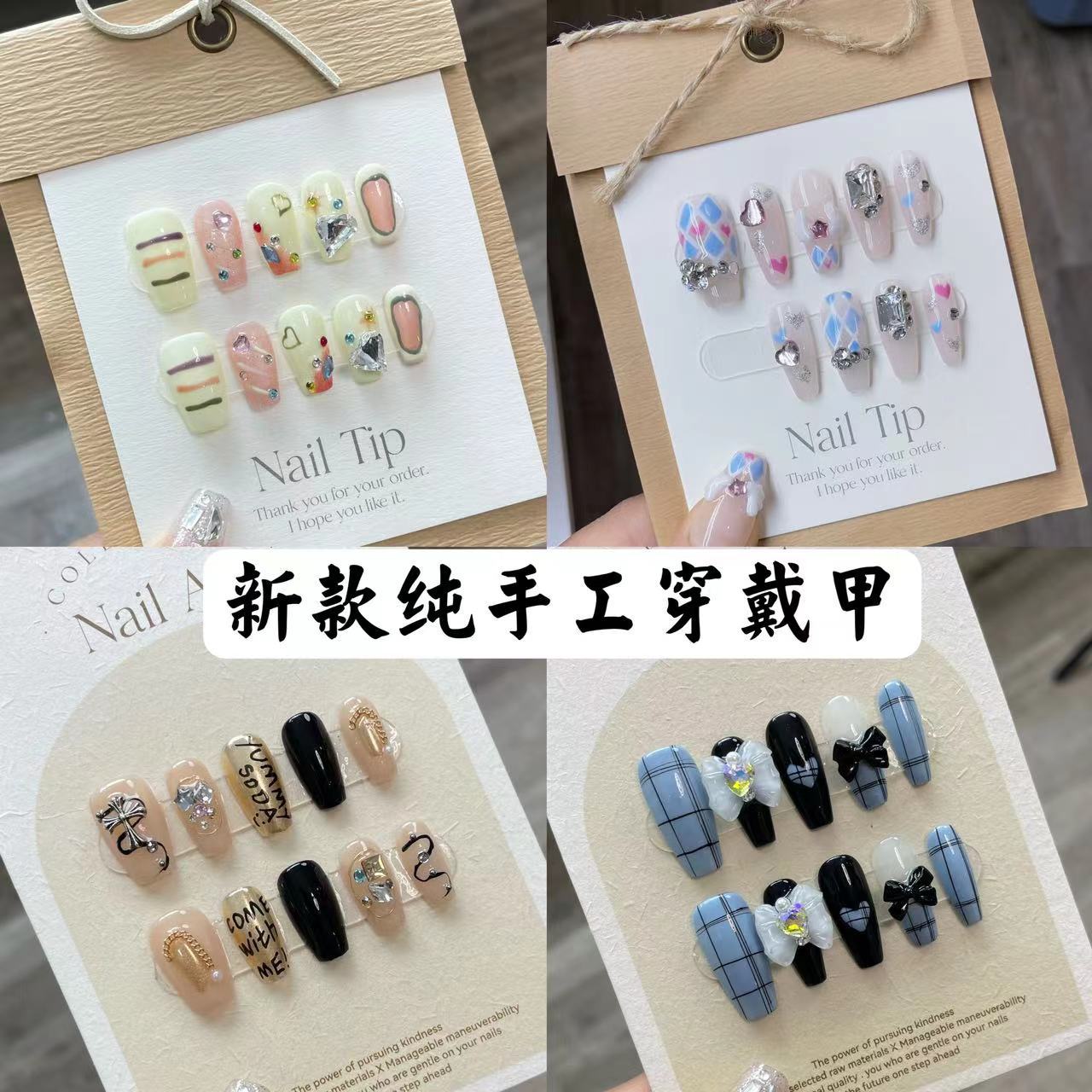 Nueva colección de uñas para usar hechas a mano, parche para uñas, uñas postizas, removibles, acabado, parche para uñas de fototerapia, producto terminado