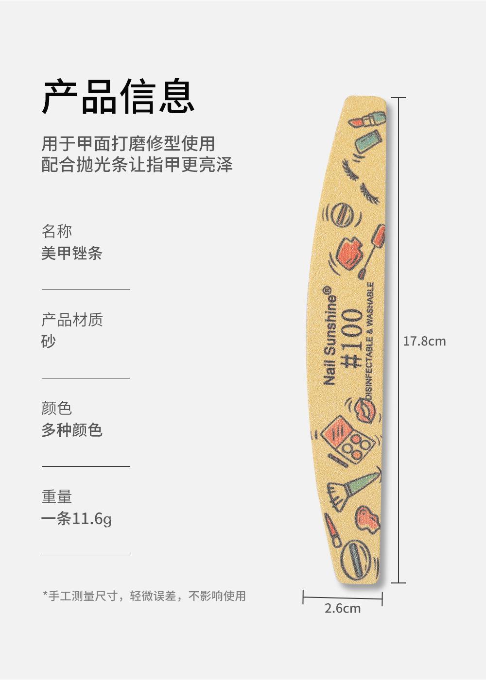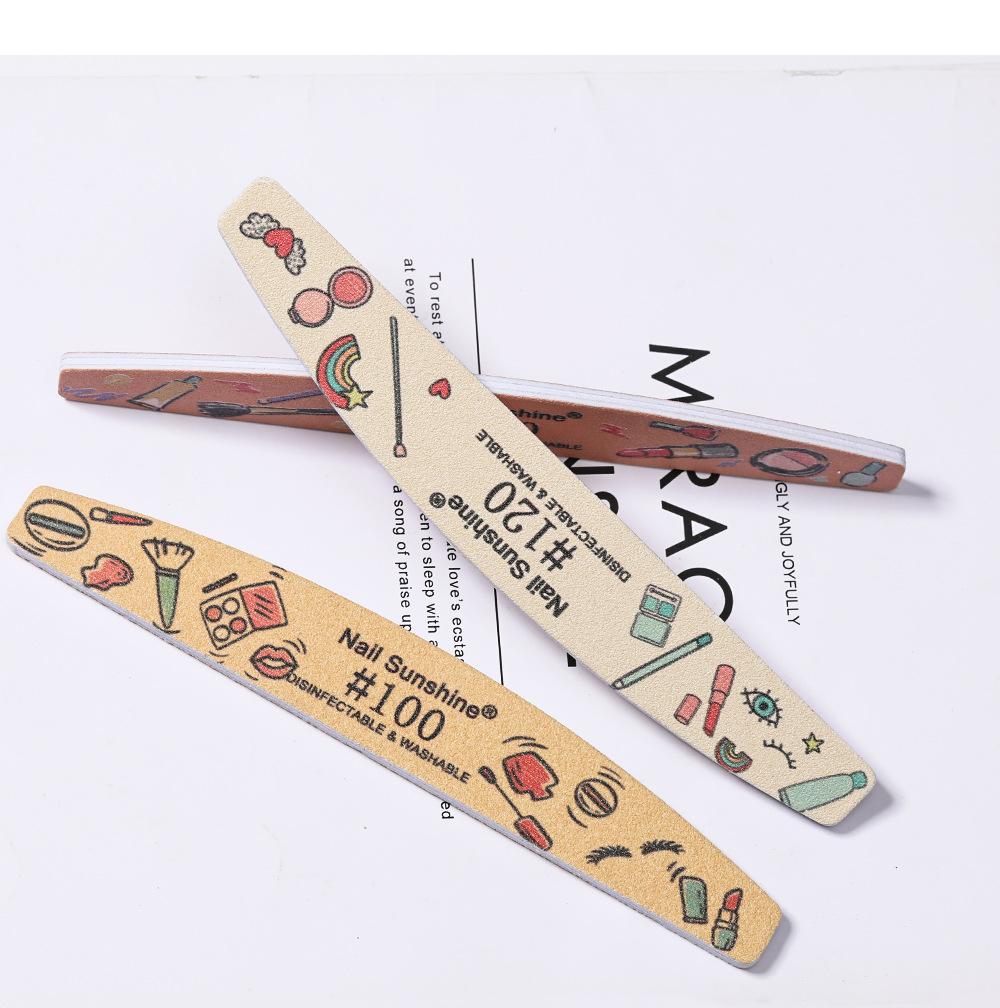 Herramientas de manicura, tira de pulido de uñas, tira de lijado especial para uñas, lima de uñas de doble cara, tira de contusión de dibujos animados de media luna, venta al por mayor