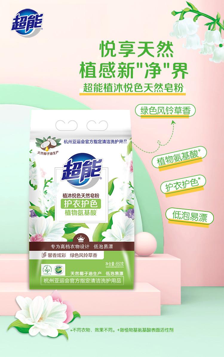 Jabón en polvo Super Natural, detergente en polvo, bolsa de 650 g, color vegetal dulce, baja espuma, fácil de flotar, fragancia de larga duración, para el hogar, ropa asequible.
