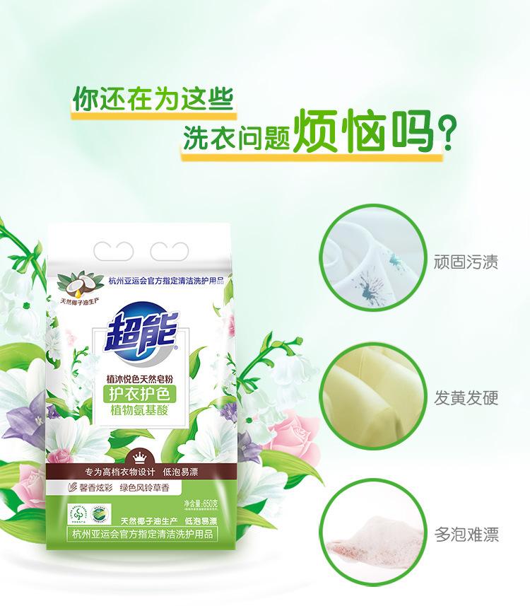 Compra Jabón en polvo Super Natural, detergente en polvo, bolsa de 650 g, color vegetal dulce, baja espuma, fácil de flotar, fragancia de larga duración, para el hogar, ropa asequible. al por mayor en Joom.pro