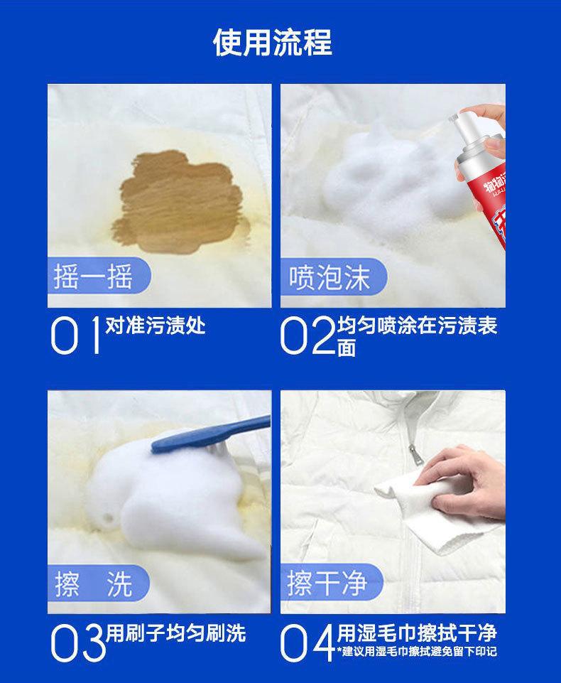 Chamarra de plumón portátil Agente de limpieza en seco Tipo espuma Quitamanchas para ropa sin agua Agente limpiador para chamarras de plumón