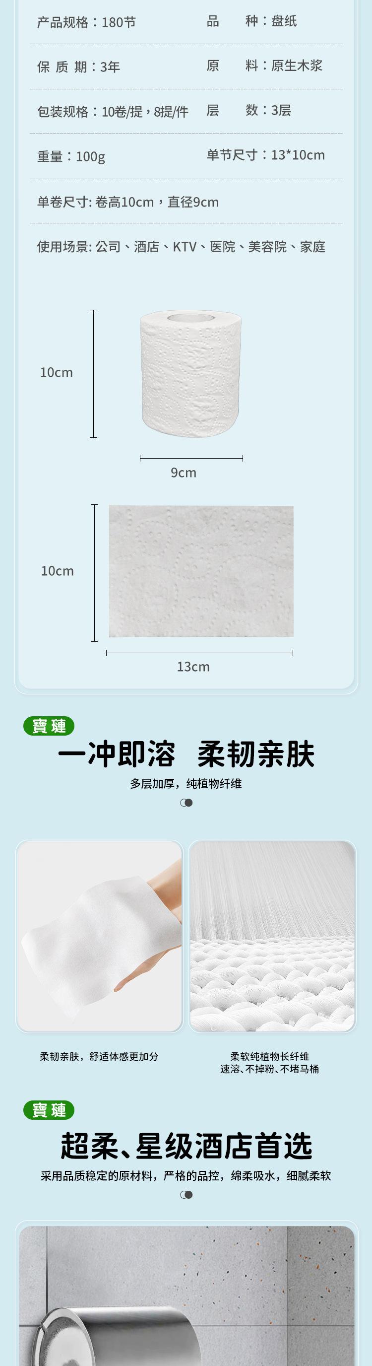 10 rolls/box, 8 boxes/piece (domestic), 100 rolls/box (exclusively for cross-border supply)