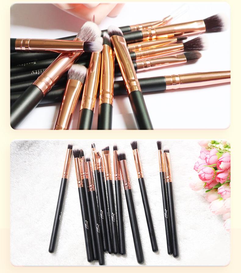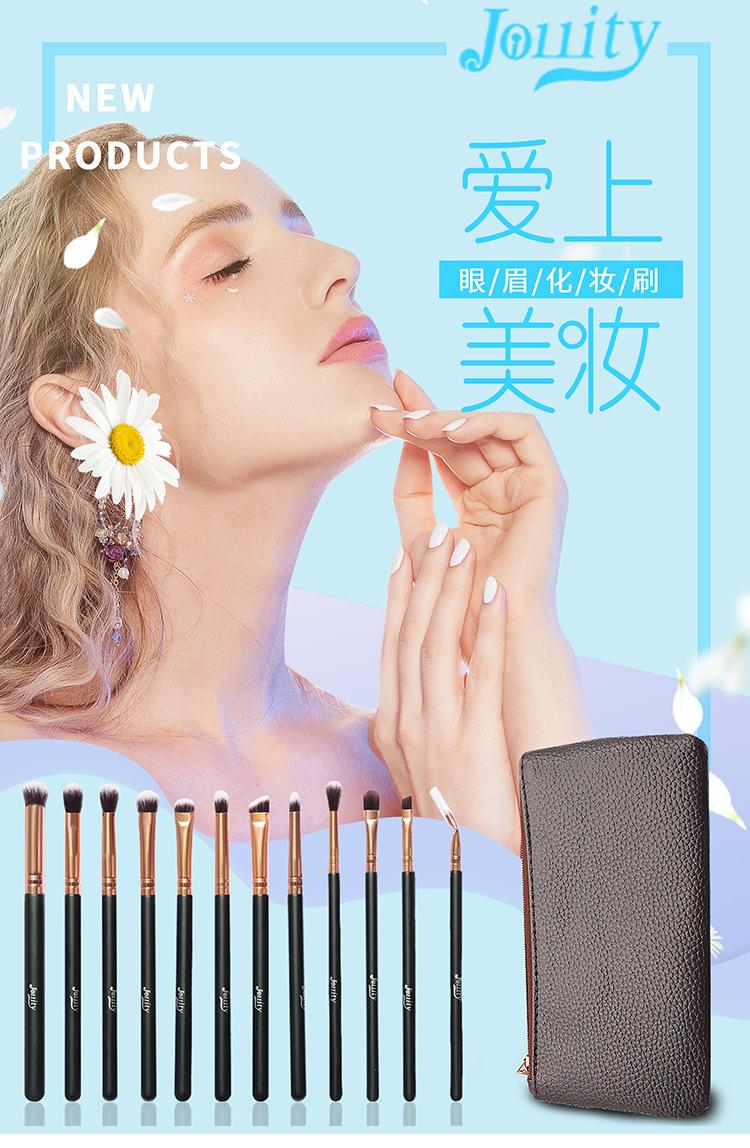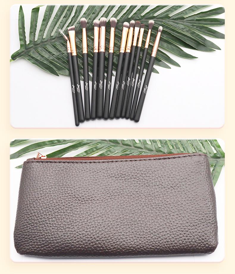 Juego de 12 brochas de maquillaje para ojos, bolsa de PU, brocha para sombras de ojos, brocha para detalles, brocha para iluminar, brocha para cejas, brocha para corrector, herramientas de belleza