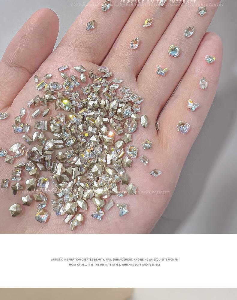Compra Mini clavo de trigo de tamaño pequeño con base puntiaguda, diamante de forma especial, mariposa blanca plateada, gota de agua, manicura, ojo de caballo, joyería, diamante adhesivo mixto al por mayor en Joom.pro