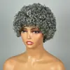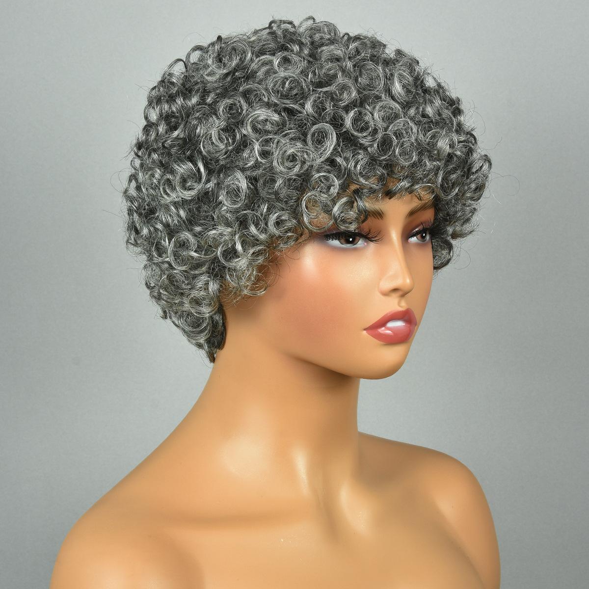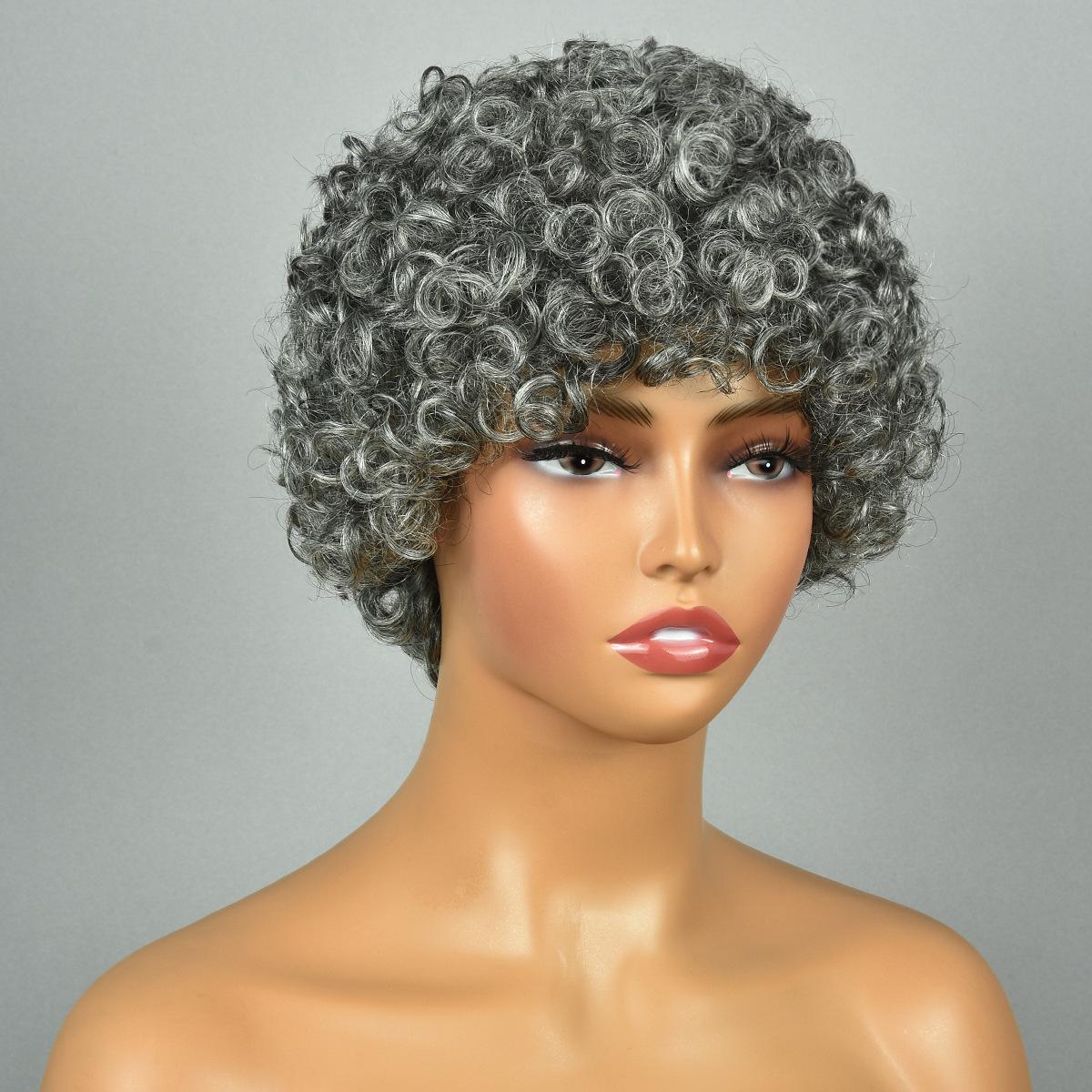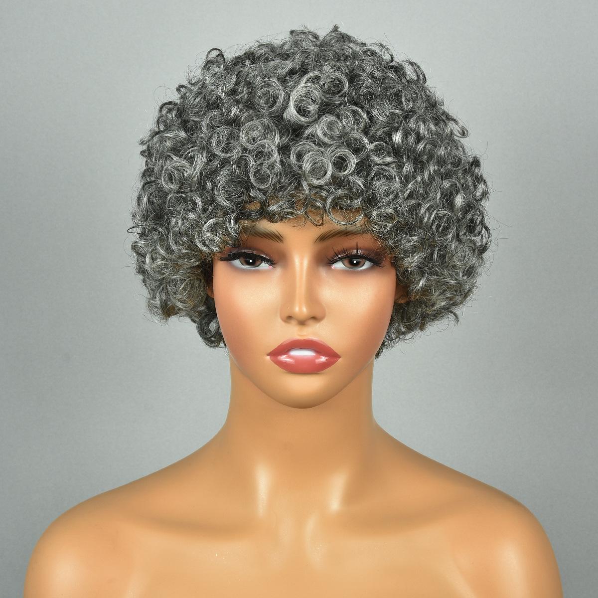 Mecanismo cabello humano real elfo rizado abuela gris peluca cubierta de cabeza ventas directas transfronterizas