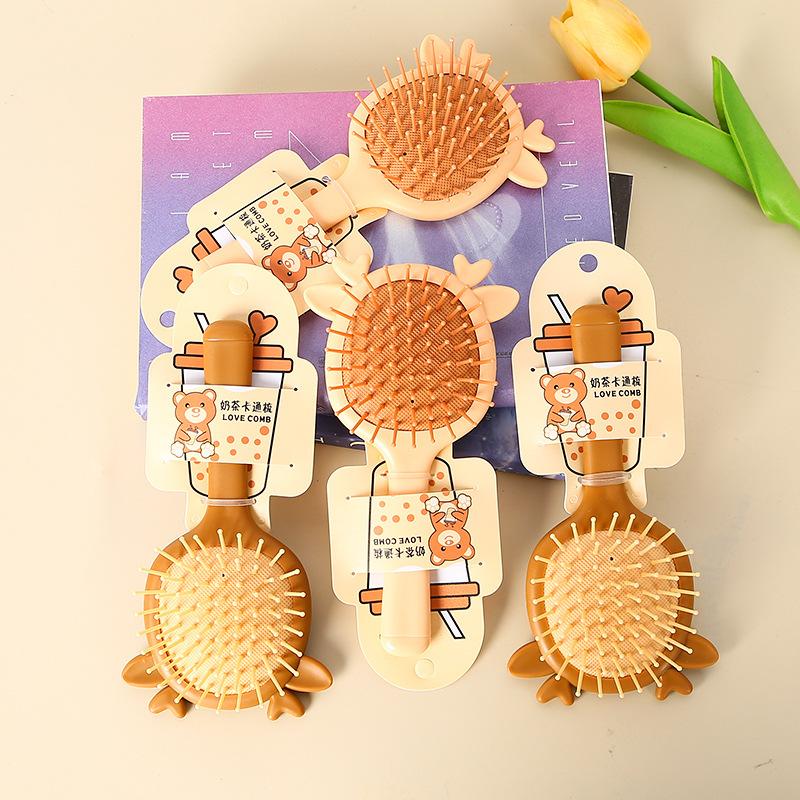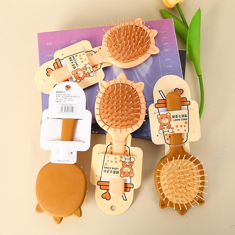 Peine para el cabello con cojín de aire, nuevo peine portátil con forma de estudiante de dibujos animados para niña, peine pequeño con bolsa de aire, peine de masaje al por mayor, 2024