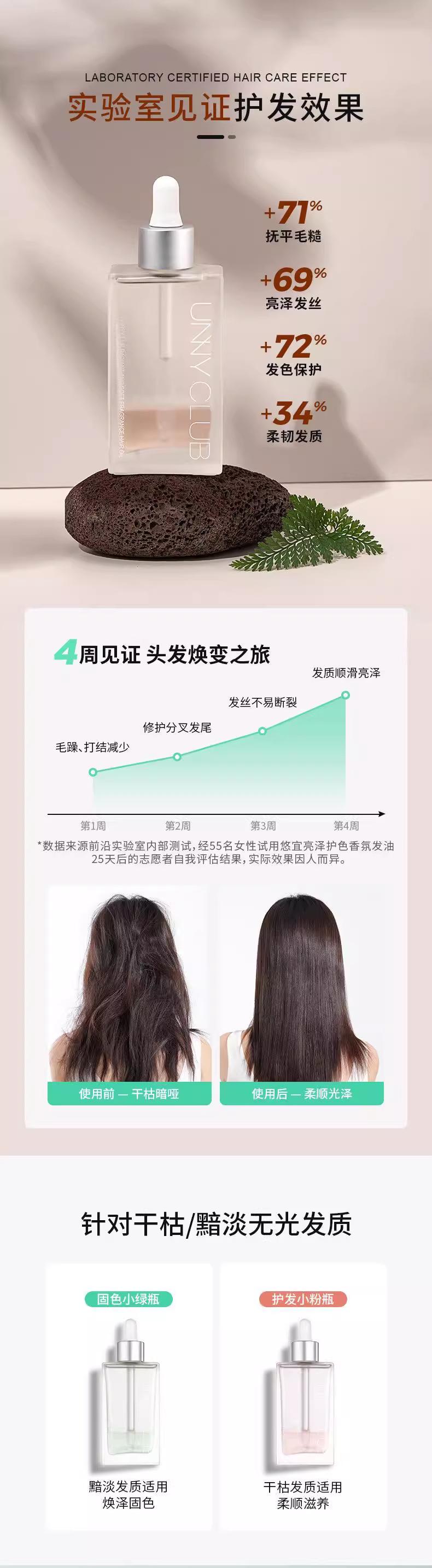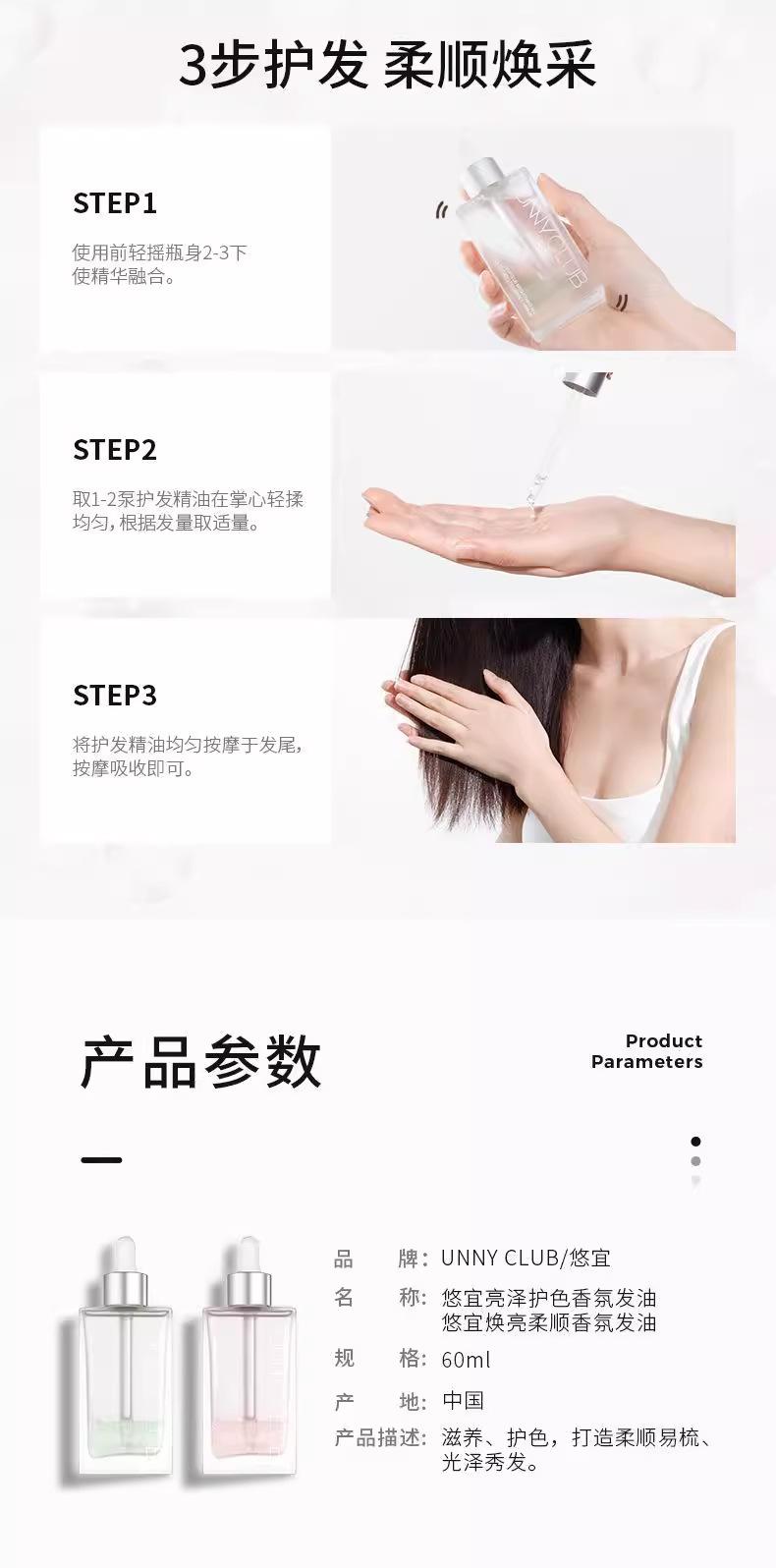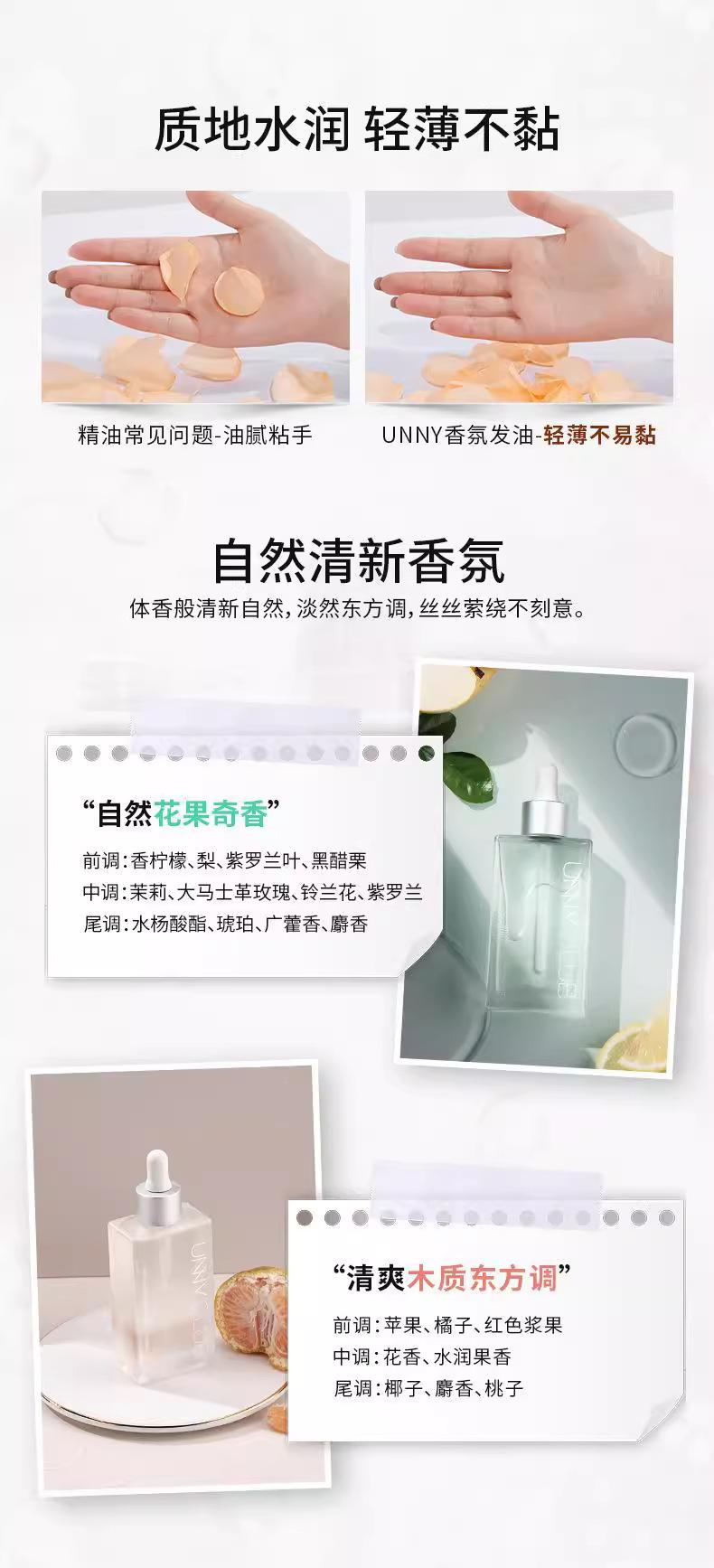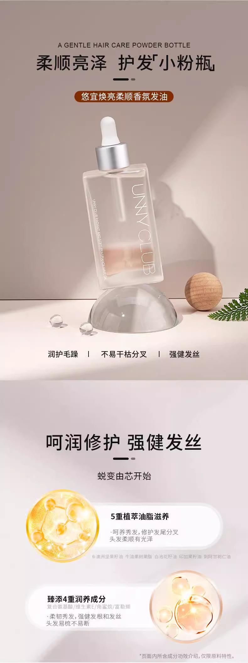 Unny Youyi Fragancia Cuidado del Cabello Aceite Esencial Aceite de Esencia Suavizante para Mujer Hidratante Refrescante Anti-Frizz Aceite para el Cabello Cuidado del Cabello Botella Pequeña de Polvo