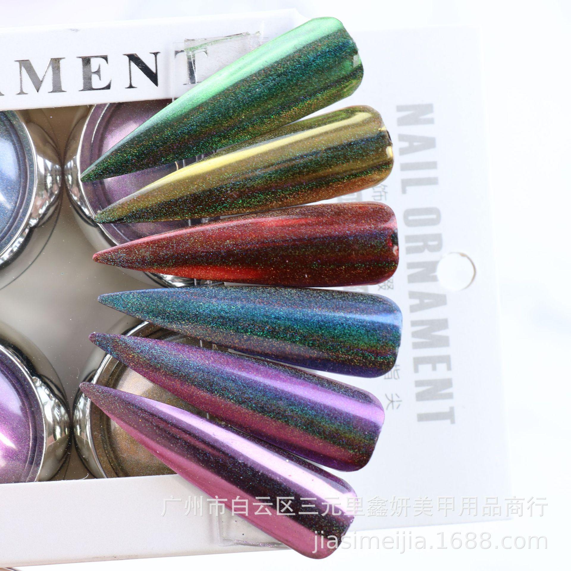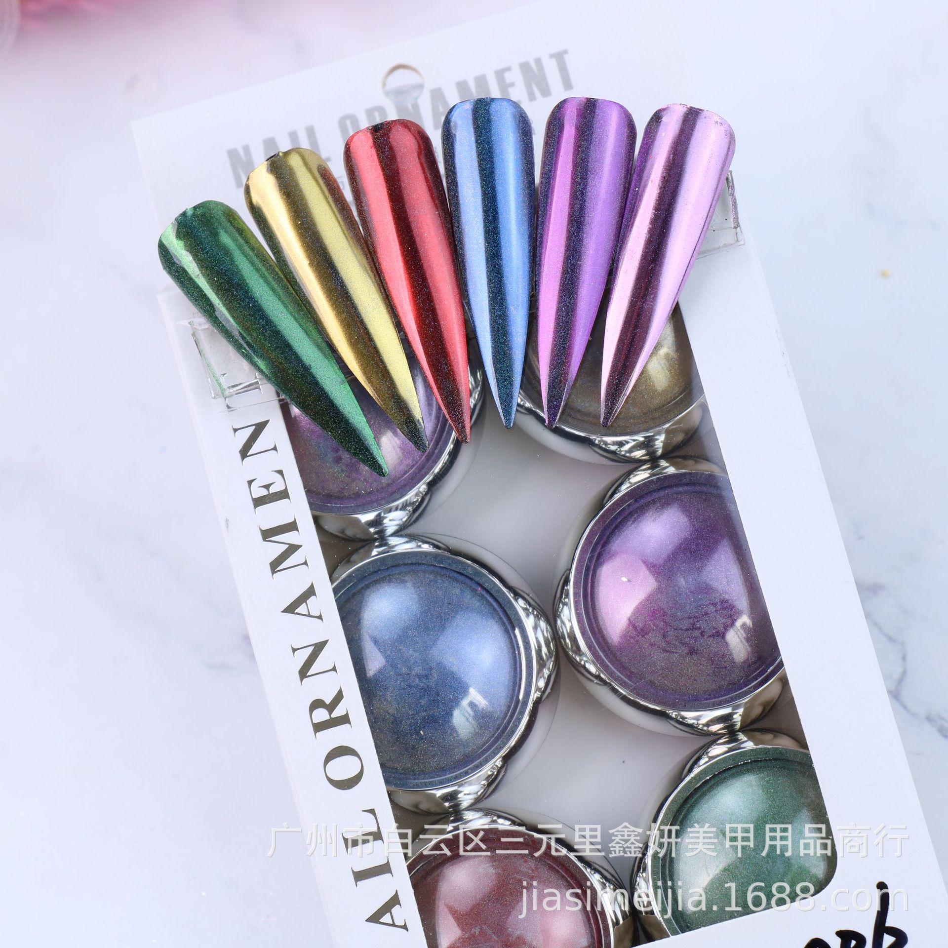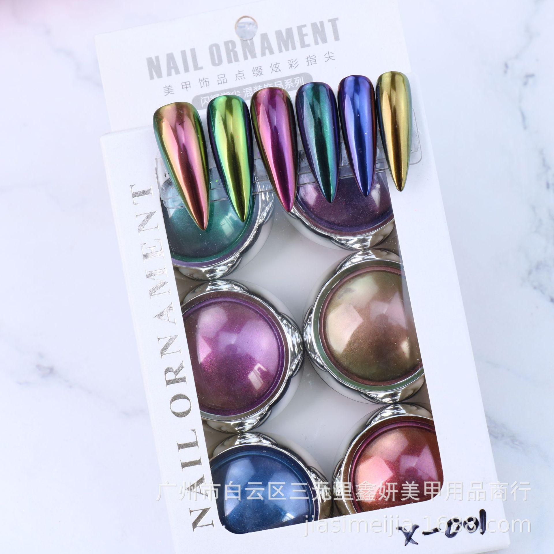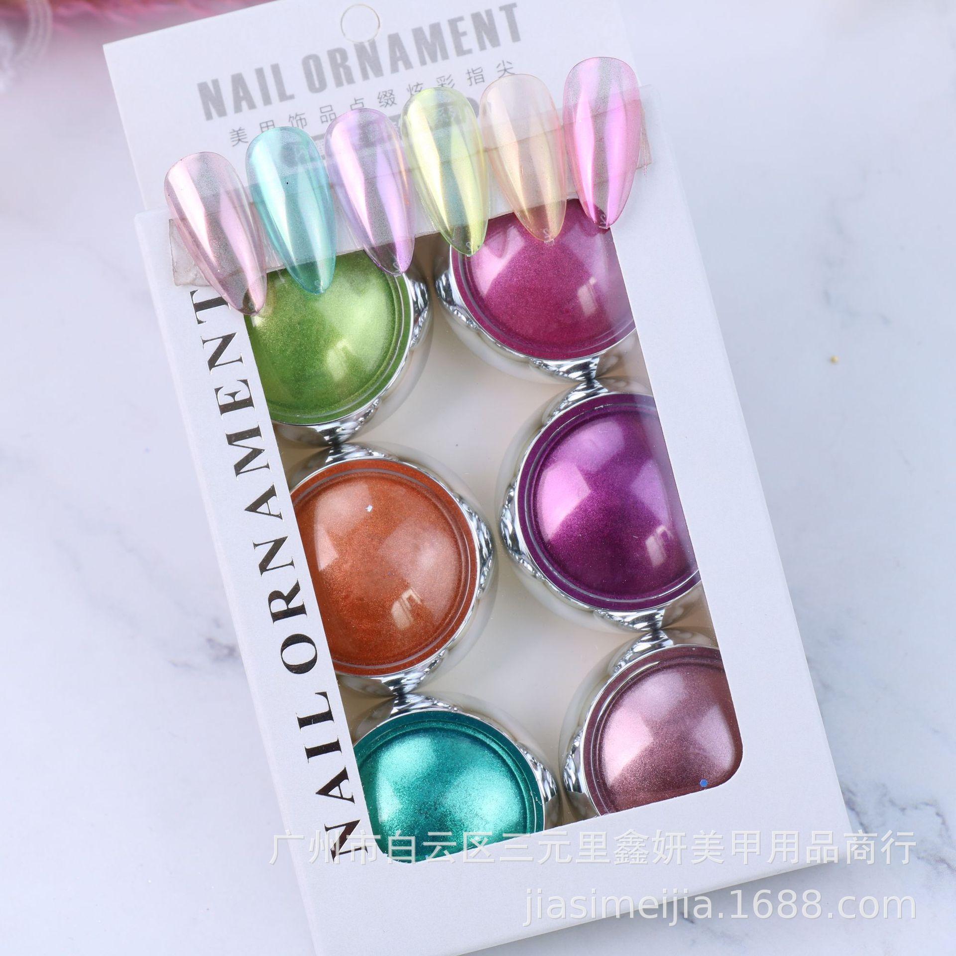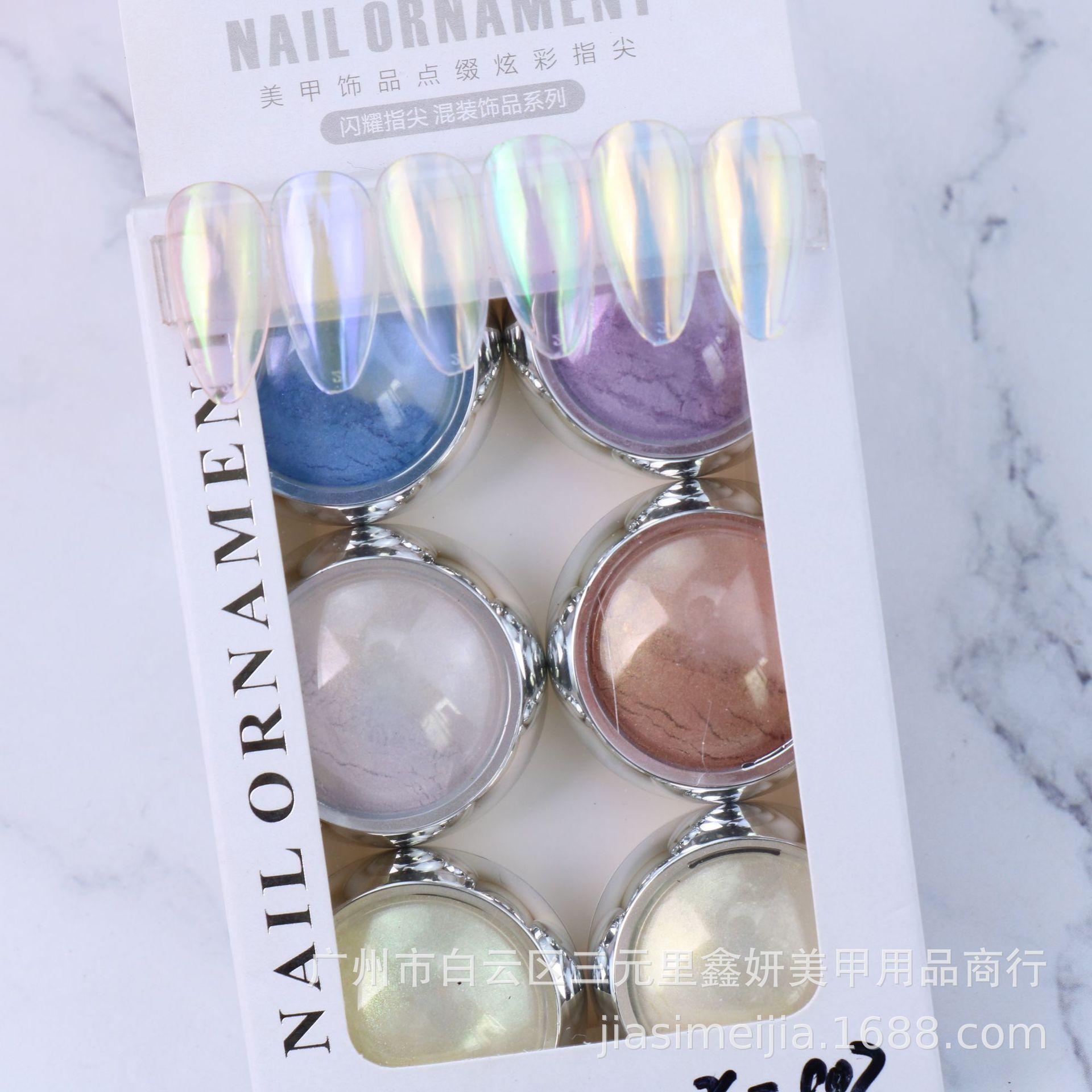 Decoraciones de Polvo Espejo Mágico para Arte de Uñas 6 Colores Polvo Aurora Luz de Luna Decoración de Brillo Láser para Uñas Transparente Hielo Cielo Estrellado Polarizado