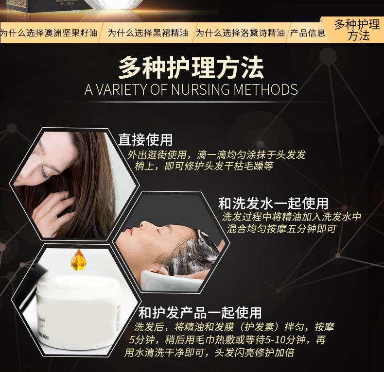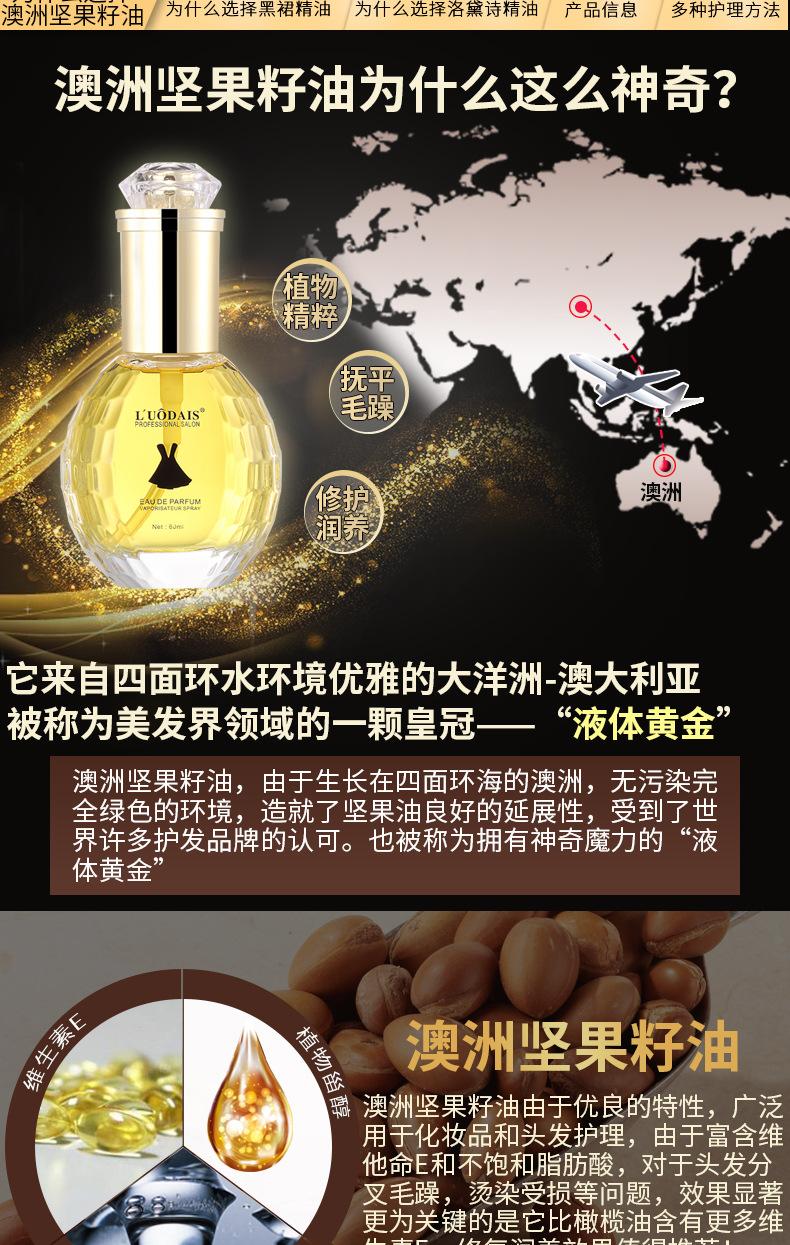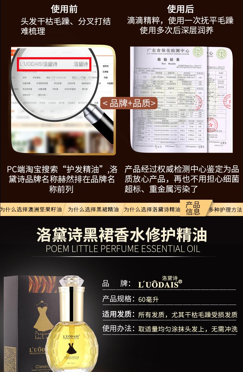 Luo Daishi Falda Negra Perfume Cuidado del Cabello Aceite Esencial Mejora el Cabello Seco y Dañado Suavizante Anti-Frizz Acondicionador Sin Enjuague