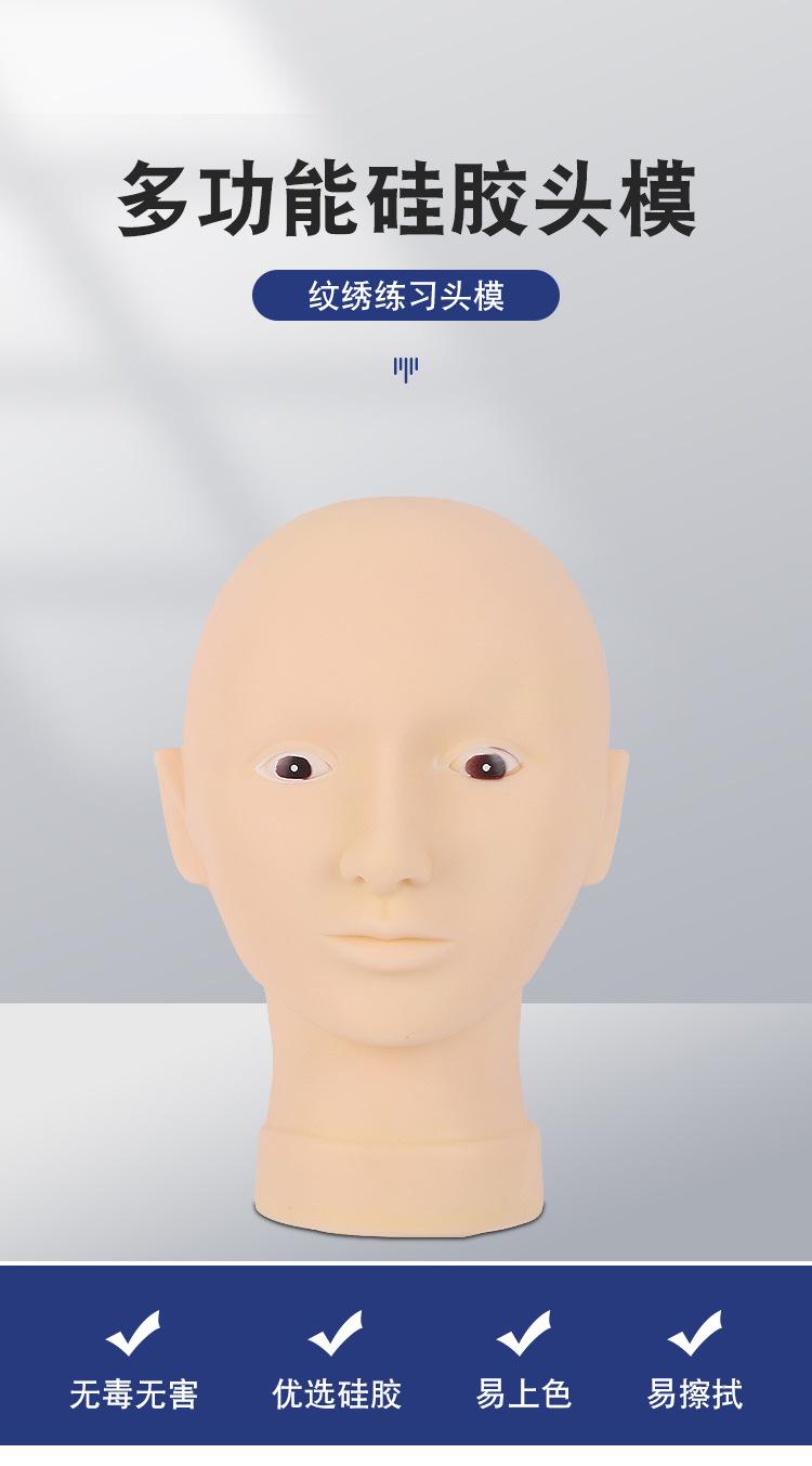 [Piel de Práctica para Tatuajes Completa] Molde de Cabeza de Silicona de Cuero Artificial de Ojo Abierto para Cejas, Ojos, Labios y Cuero Cabelludo Injerto de Pestañas
