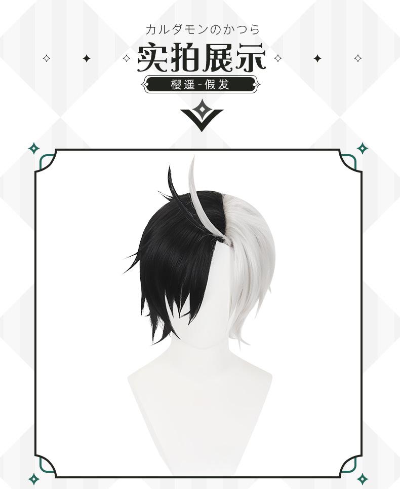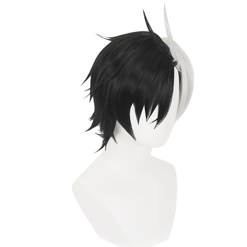 Cardamomo Timbre a prueba de viento Yingyao Peluca de cosplay Bicolor Blanco y Negro Cabello corto bob invertido