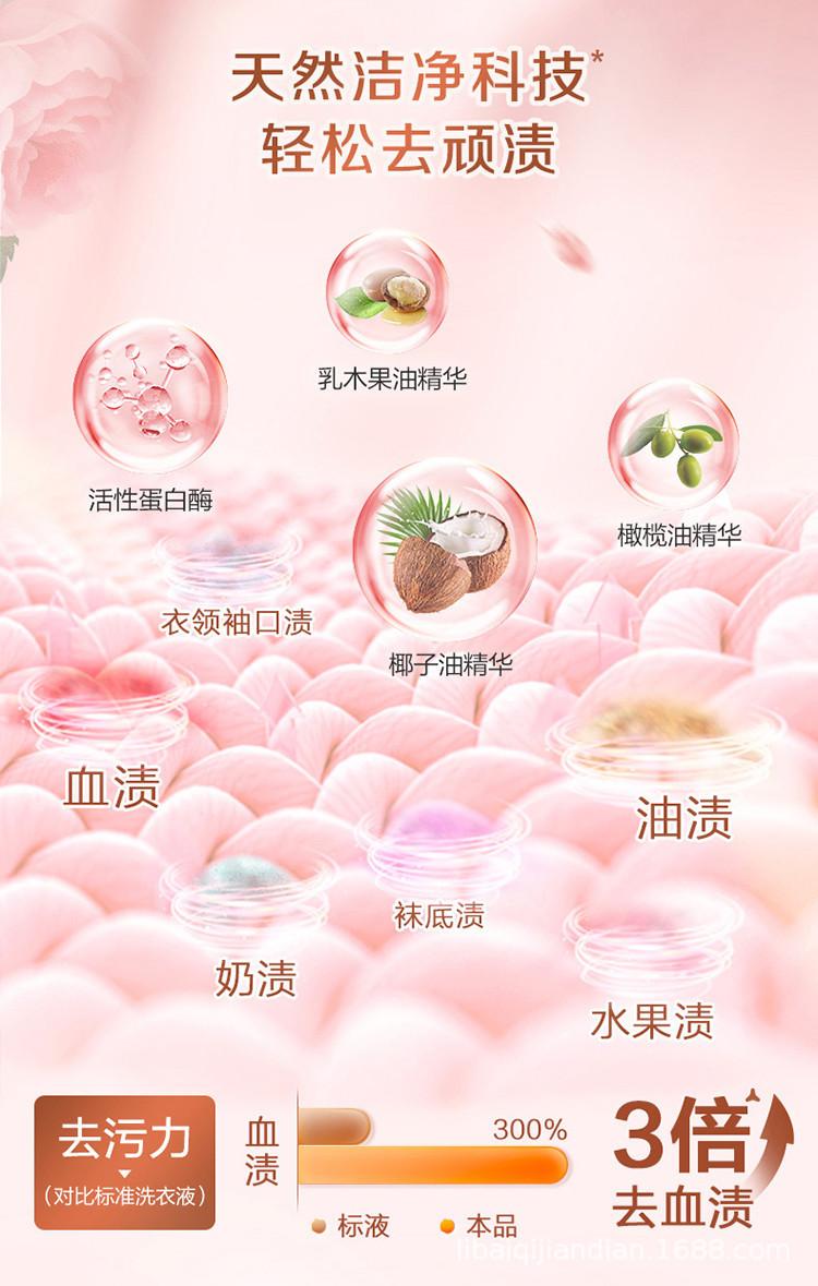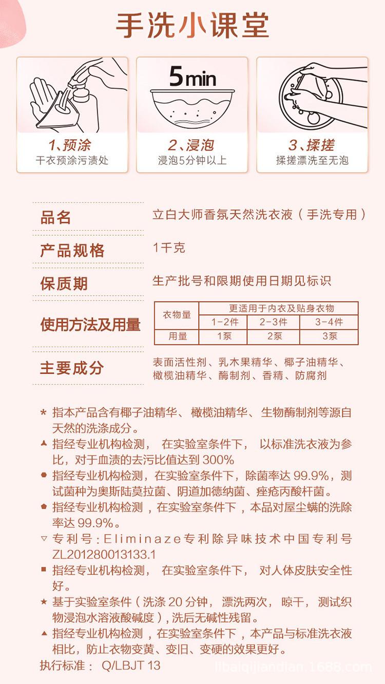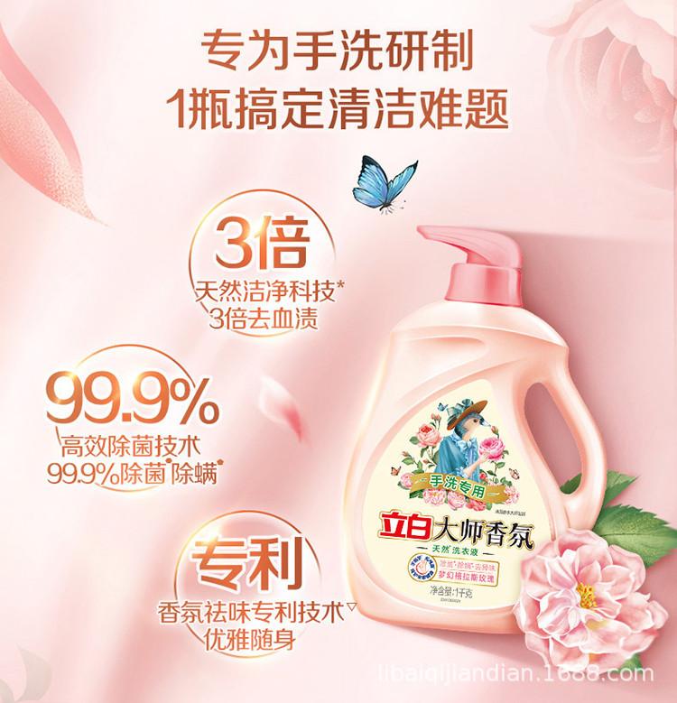 Detergente Líquido Fragancia Master Li Bai para Lavado a Mano Quitamanchas de Sangre, Eliminación de Bacterias, Eliminación de Olores y Eliminación de Ácaros 1kg Fácil de Enjuagar y Sin Residuos