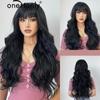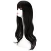 Peluca femenina flequillo recto onda grande cabello largo rizado elegir color simulación fibra química seda de alta temperatura cobertura completa de cabeza en stock ventas directas de fábrica