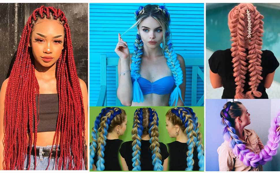 Peluca de trenza grande colorida con degradado de color, fibra química, trenza grande, trenza jumbo, fibra química, trenza de cabello de seda de alta temperatura.