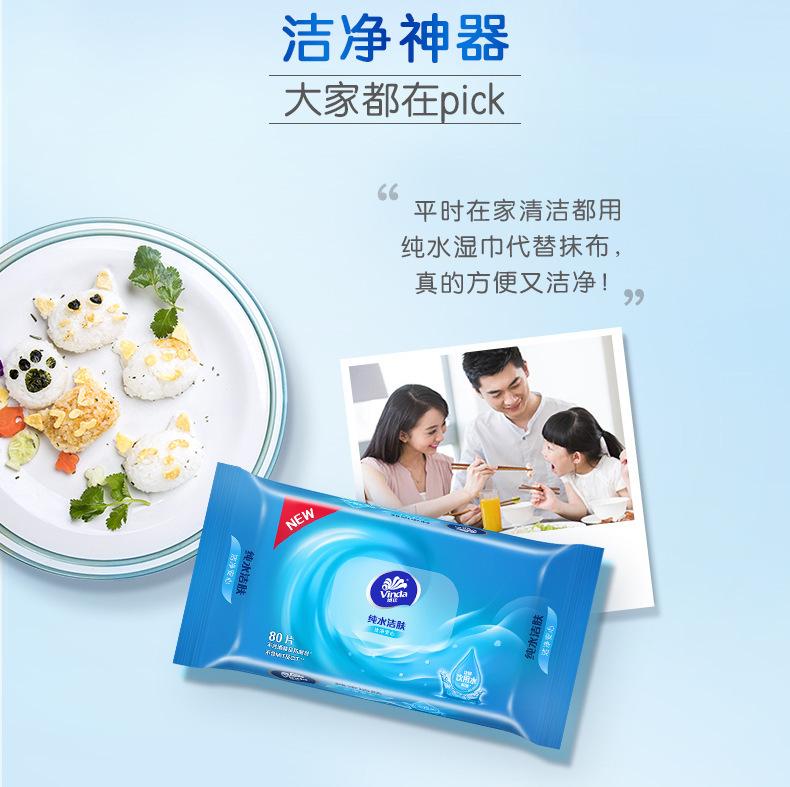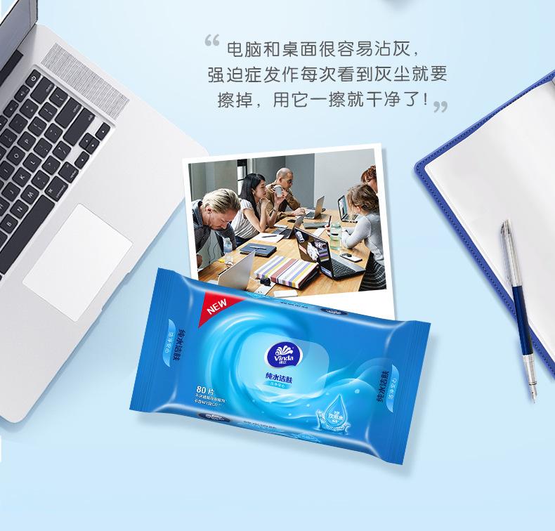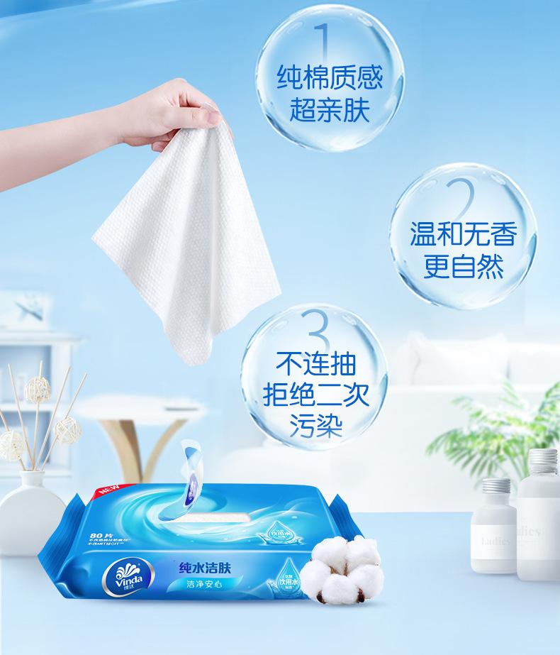 Toallitas Húmedas Vinda Agua Pura Sin Aroma Limpieza Toallitas Suaves Vw1027 Antibacteriales Tipo Extracción 80 Piezas Toallitas Húmedas de Higiene para Adultos
