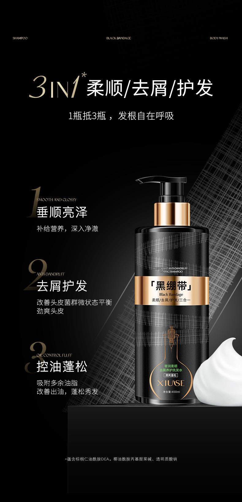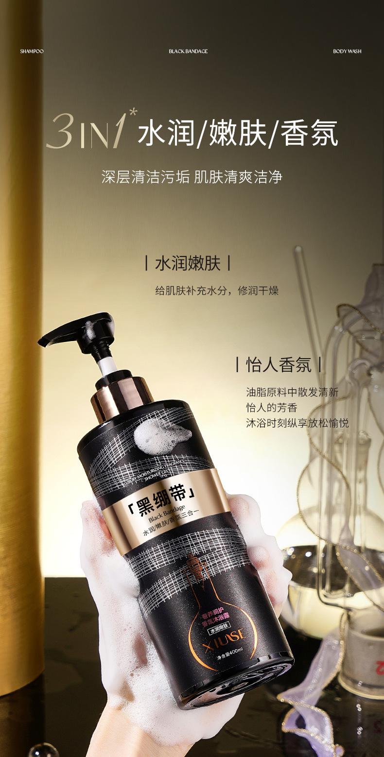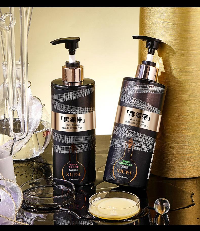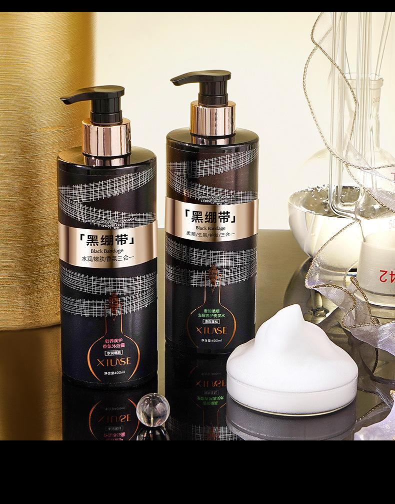 Xiuse cuidado suave anticaspa lujo champú hidratante fragancia gel de ducha cuidado del cabello y rejuvenecimiento de la piel tres en uno 400ml mayoreo