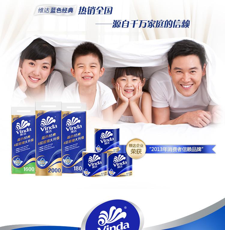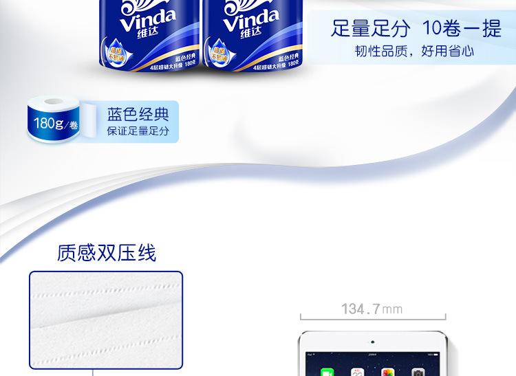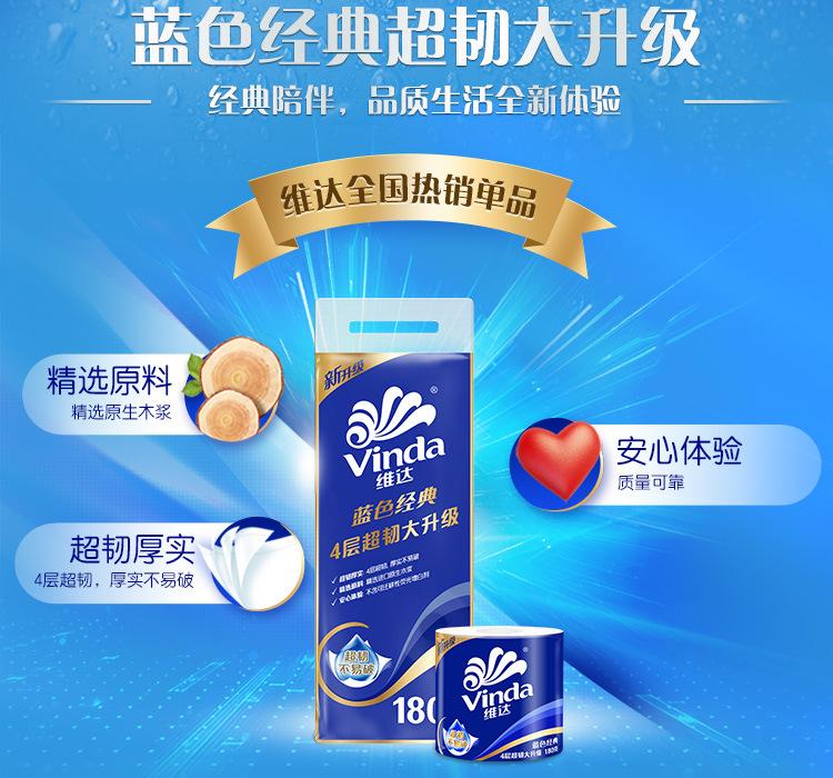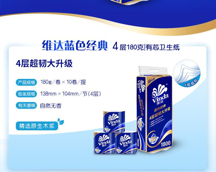 Papel Higiénico Vinda Azul Clásico Rollo con Centro 4 Capas 180g 10 Rollos Rollo Grande Hogar Papel Higiénico Papel Higiénico