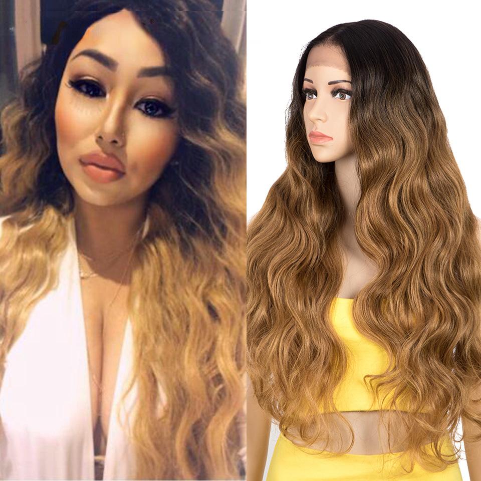 Peluca europea y americana de onda profunda, cabello rizado de 30 pulgadas de largo, peluca de encaje frontal 13*6, peluca de fibra química de seda de alta temperatura