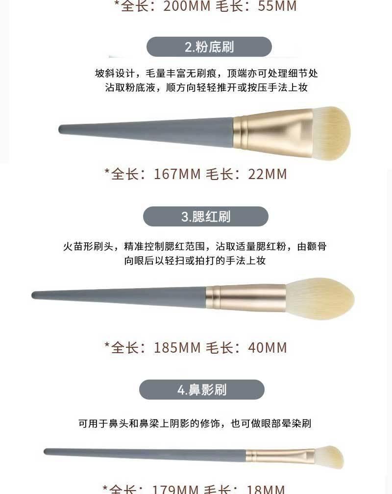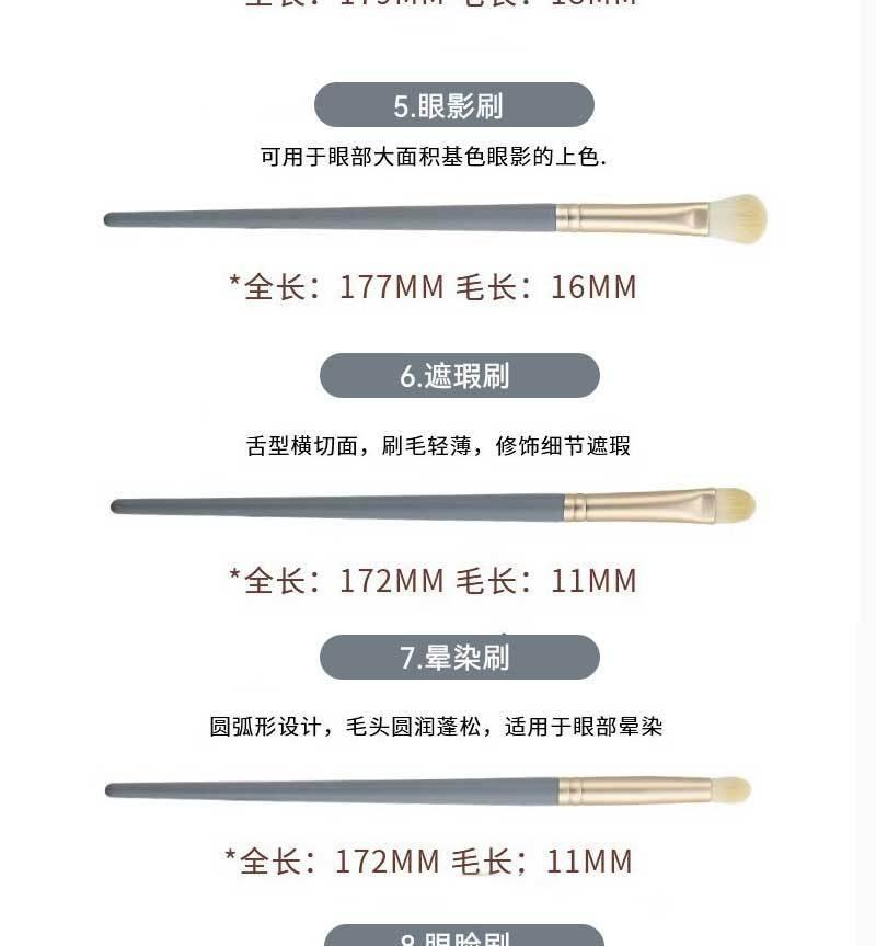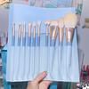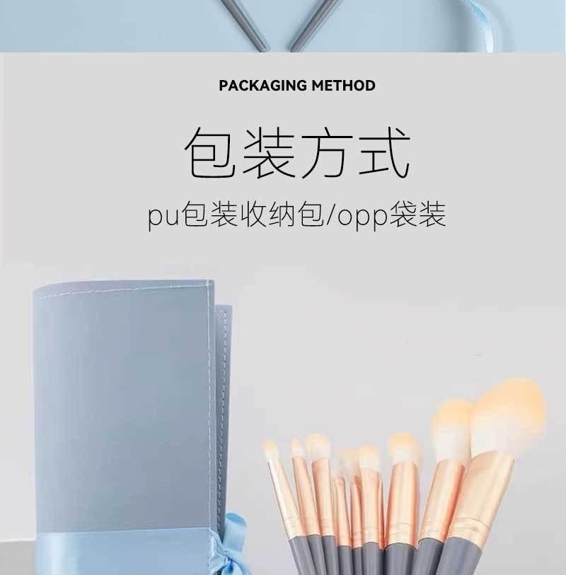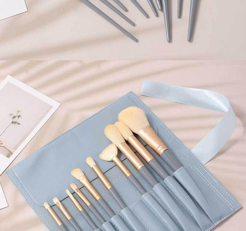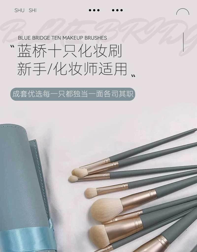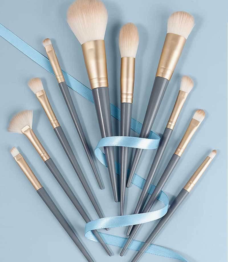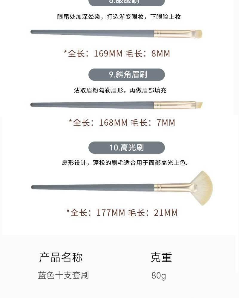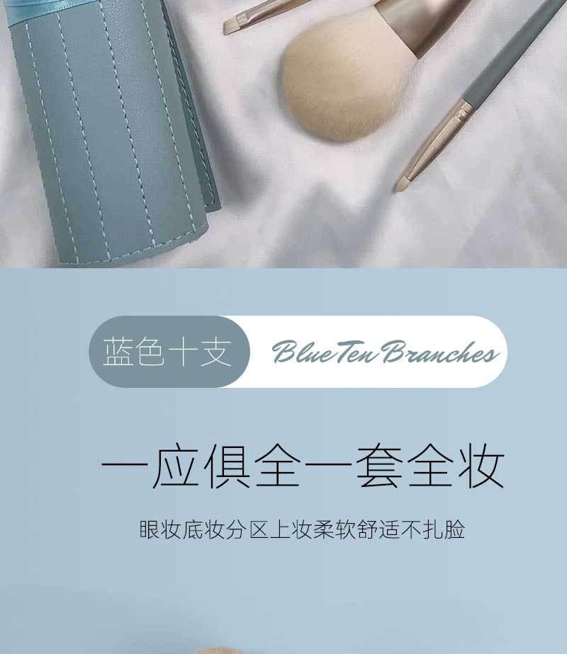 Herramienta de maquillaje de belleza, 10 pinceles de maquillaje con puente azul, para sombra de ojos, polvos, base portátil, pincel de maquillaje de pelo suave.