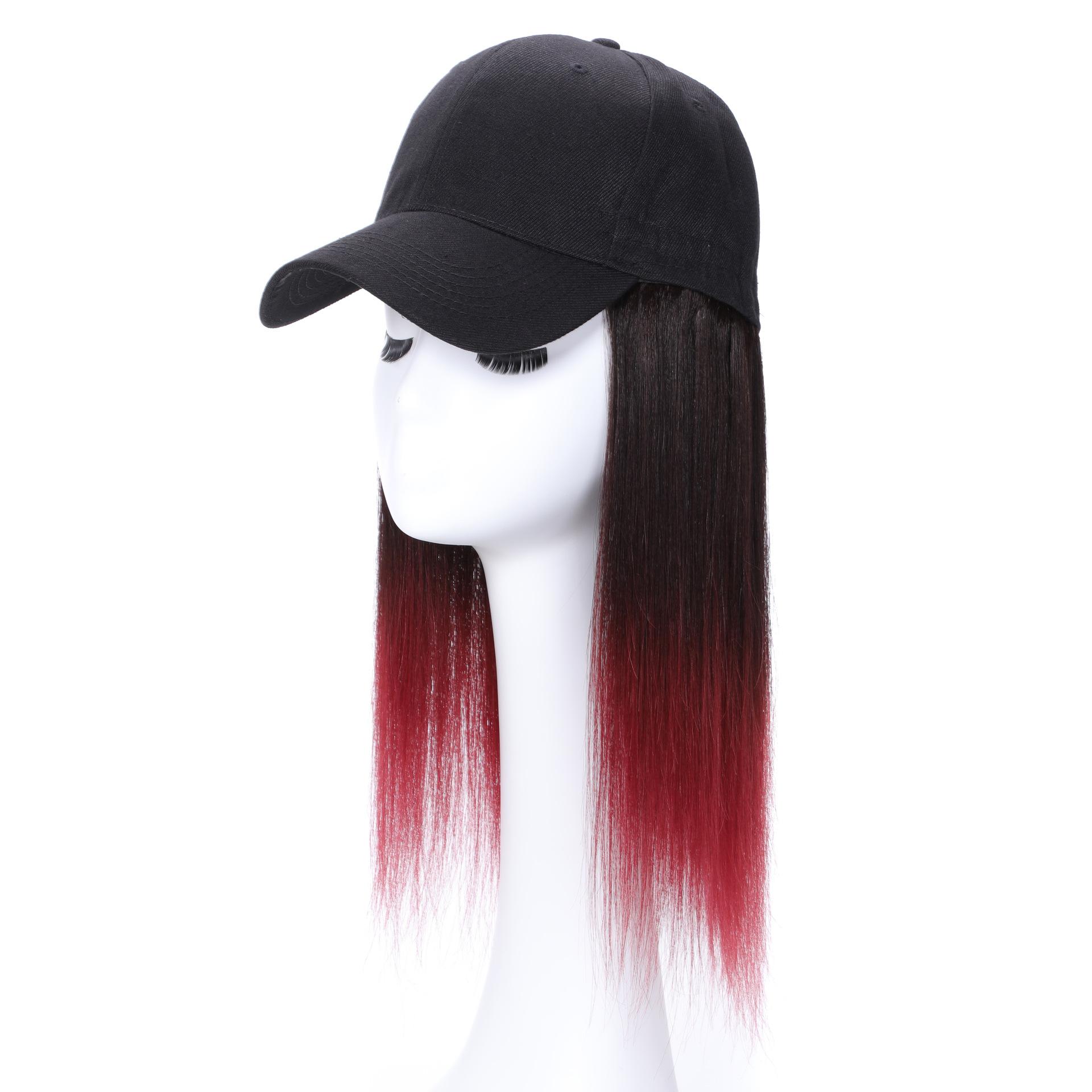 Nombre del producto: Cabello real longitud media cabello lacio peluca con sombrero integrada verano bob gorra de béisbol peluca cabello corto lacio peluca cubierta para la cabeza