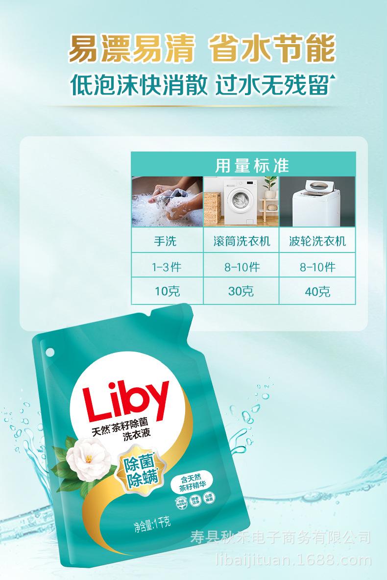 Detergente para ropa con esterilización de semillas de té Libai, limpieza profunda, esterilización, eliminación de ácaros, uso doméstico, envasado en bolsa de 1 kg, suplemento al por mayor