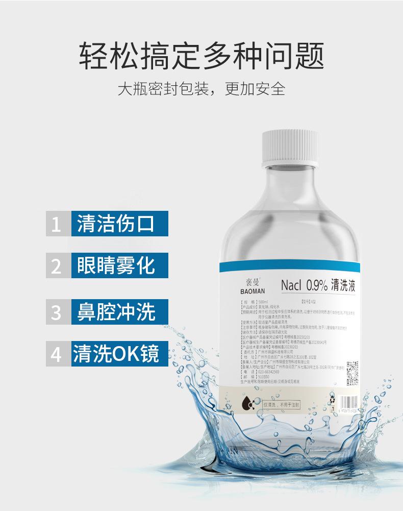 Solución Salina Estéril Grado Médico Bao Man 500ml Solución para Limpieza de Heridas para Acné Compresa Húmeda Tatuaje Tatuaje de Cejas Solución Limpiadora