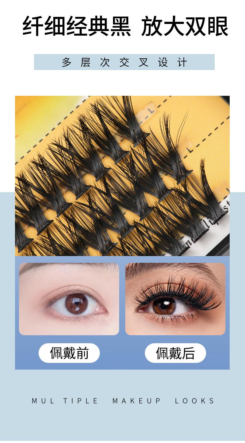 Pestañas postizas de fusión en caliente de 50 piezas, segmentadas y de un solo grupo, de gran capacidad, rizadas, estereoscópicas, de simulación.
