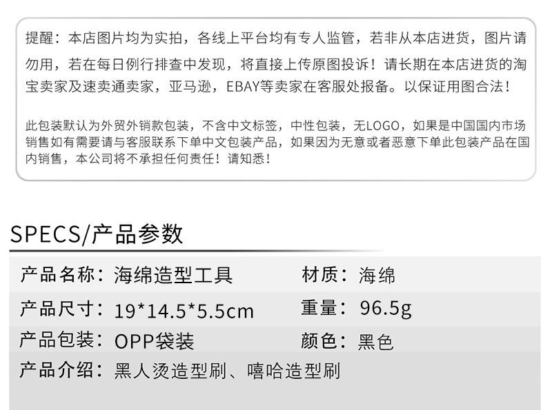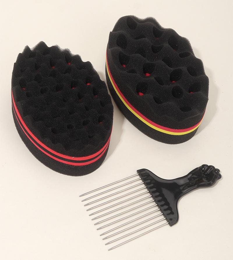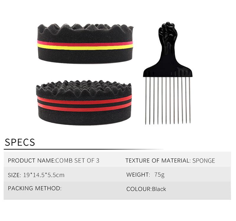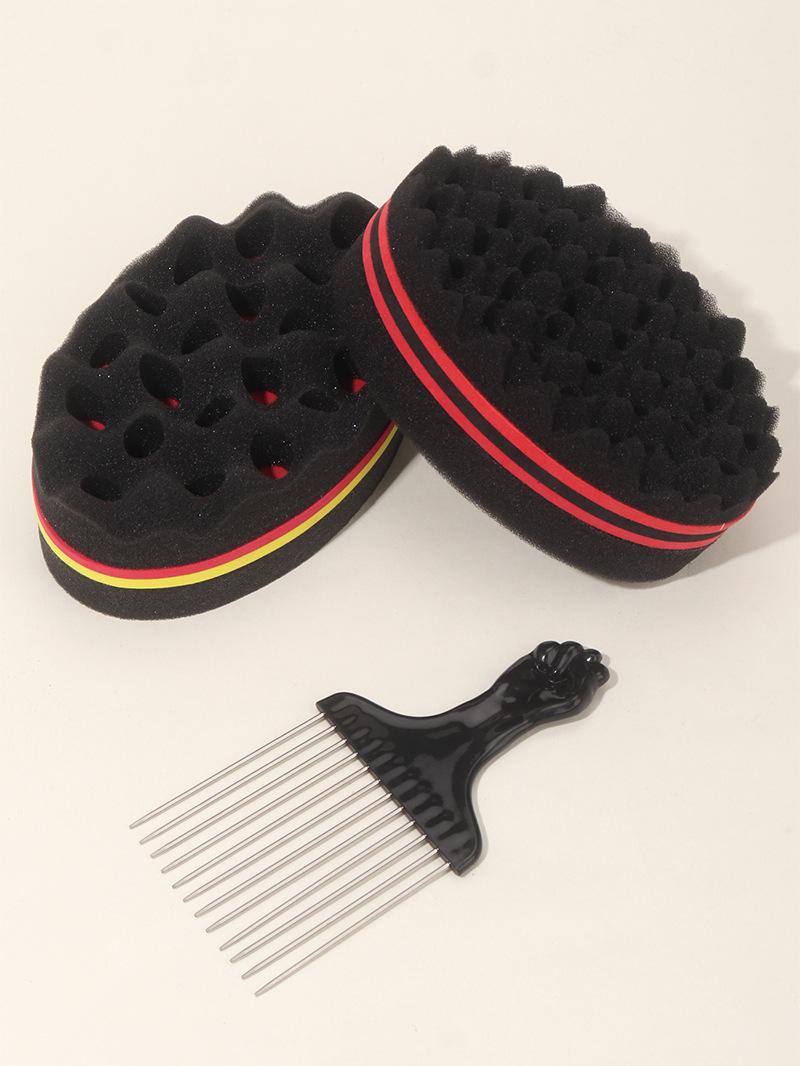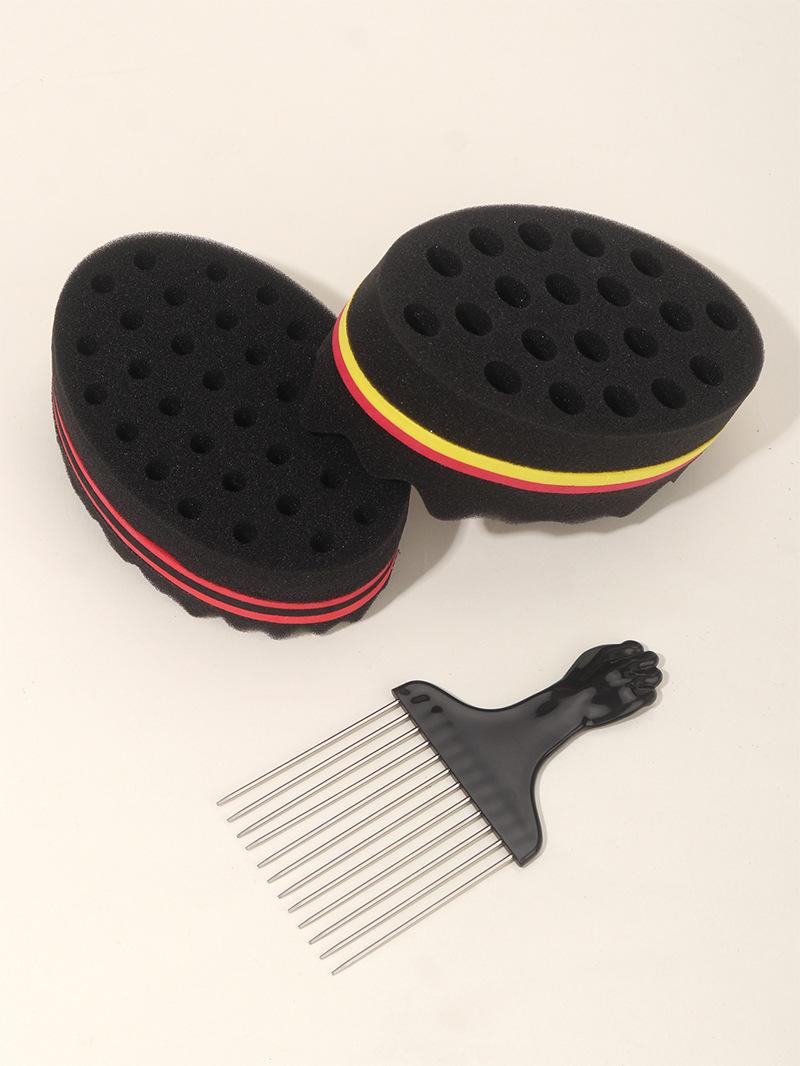 Herramienta de peluquería esponja negra para permanente artefacto para cabello rizado de dos lados con agujeros esponja modeladora peine de púas de acero peine de púa juego de 3 piezas