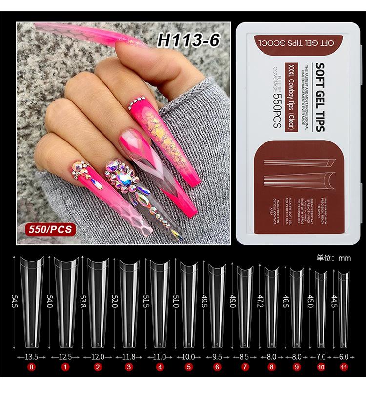 Super Long Full Sticker Natural Color H113-1, Ultra-long transparent color H113-2, Extra Long French Natural C...