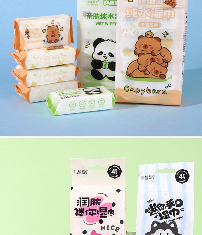 Papel Tisú Húmedo Bebé Mano Boca Toallitas Húmedas para Bebé Niños Hogar Toallitas Húmedas Limpieza Bolsa Pequeña Portátil Toallitas Húmedas Mujeres