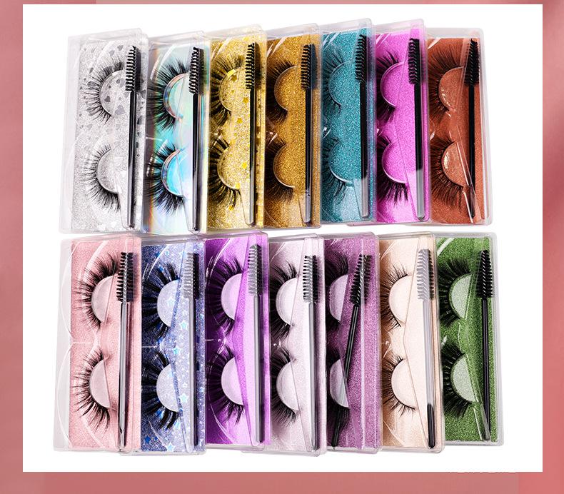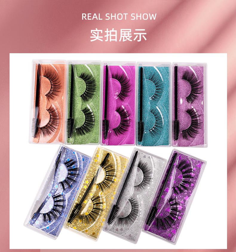 Venta al por mayor de fábrica Nuevas pestañas postizas 3D color tarjeta inferior pestañas con cepillo para pestañas pestañas postizas naturales gruesas europeas y americanas