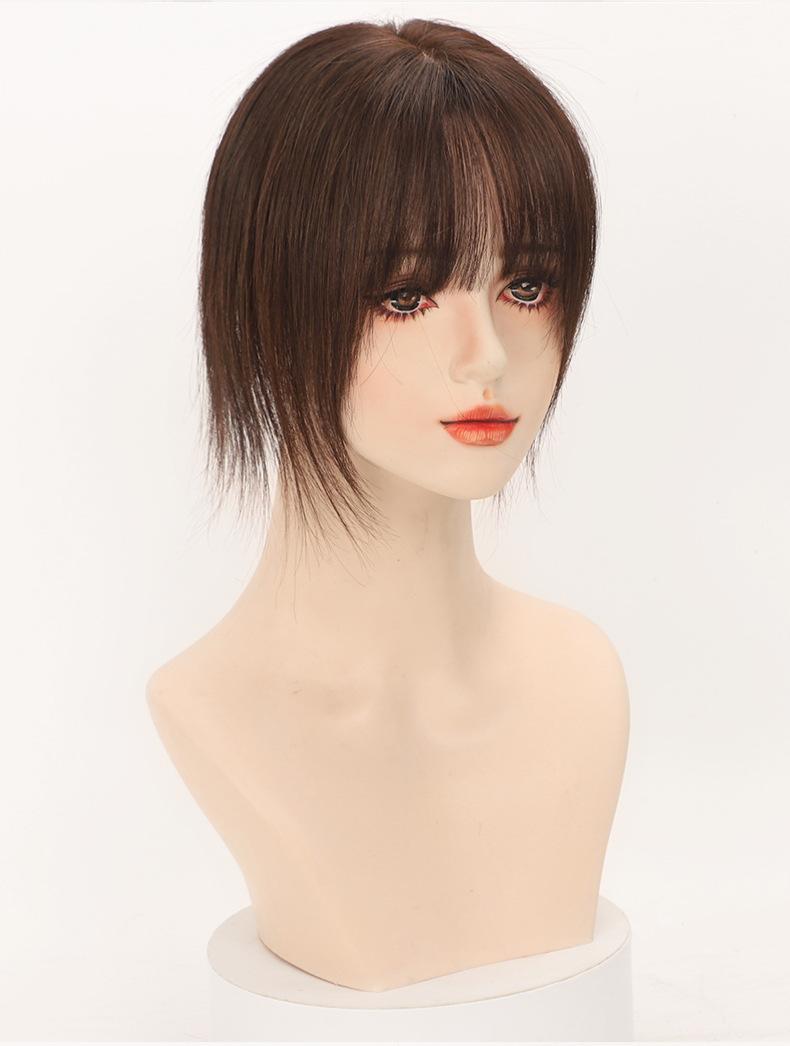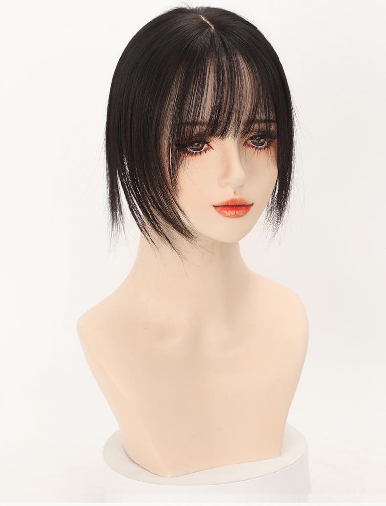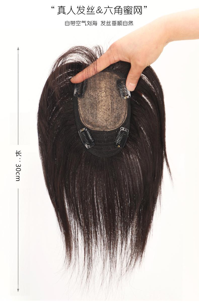 Peluca de mujer con flequillo de cabello natural, reparación del cabello, pieza de cabello esponjosa, cubierta frontal natural, cabello blanco, flequillo de aire, flequillo postizo