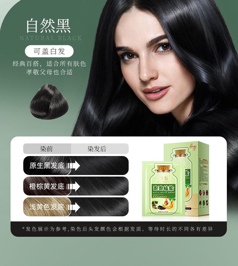 [Embalaje independiente] Crema colorante para el cabello nutritiva de plantas naturales teñidas con burbujas, cubierta negra, crema colorante para el cabello blanca suave que no se desvanece