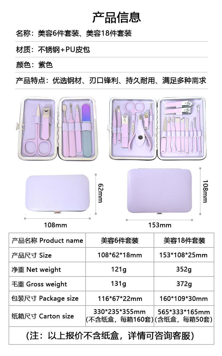 Fabricantes de origen juego de cortaúñas de acero inoxidable de 18 piezas juego completo de cortaúñas cortaúñas herramientas de belleza para uñas