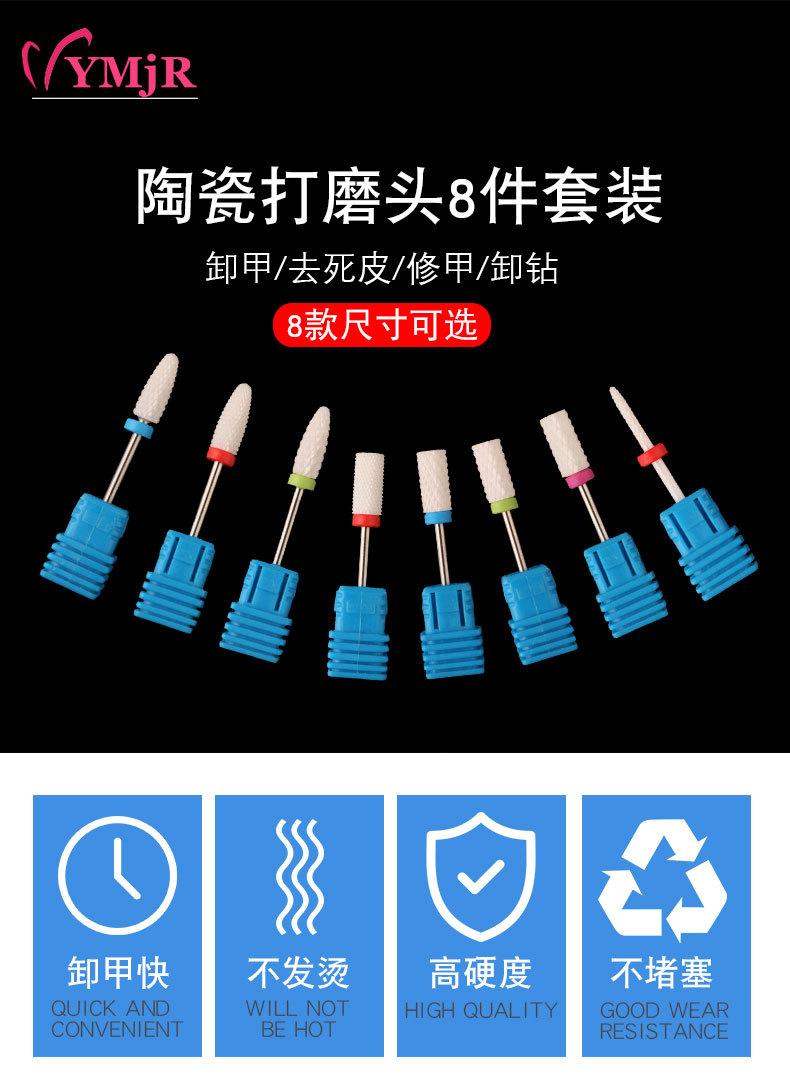 Juego de cabezales de pulido de cerámica para decoración de uñas, máquina pulidora, cabezal de pulido, cepillo, quitaesmalte, pegamento para eliminar la piel muerta