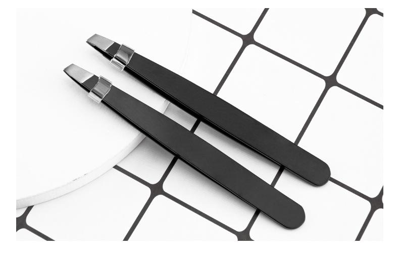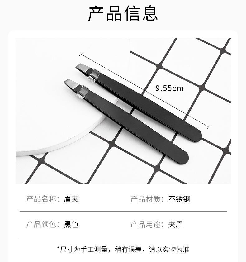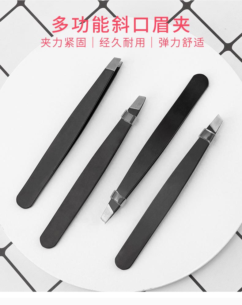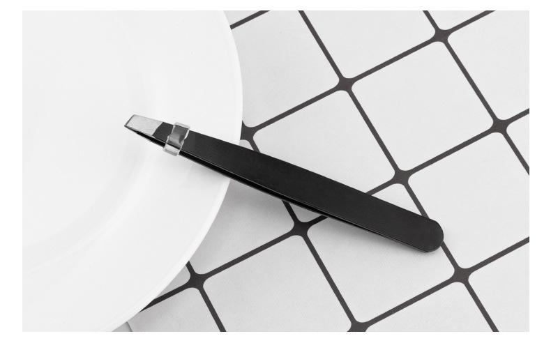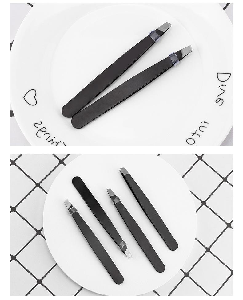 Pinza para cejas oblicua de acero inoxidable, pinzas negras para depilar cejas, pinzas para recortar cejas, herramientas de maquillaje de belleza, venta al por mayor de fábrica