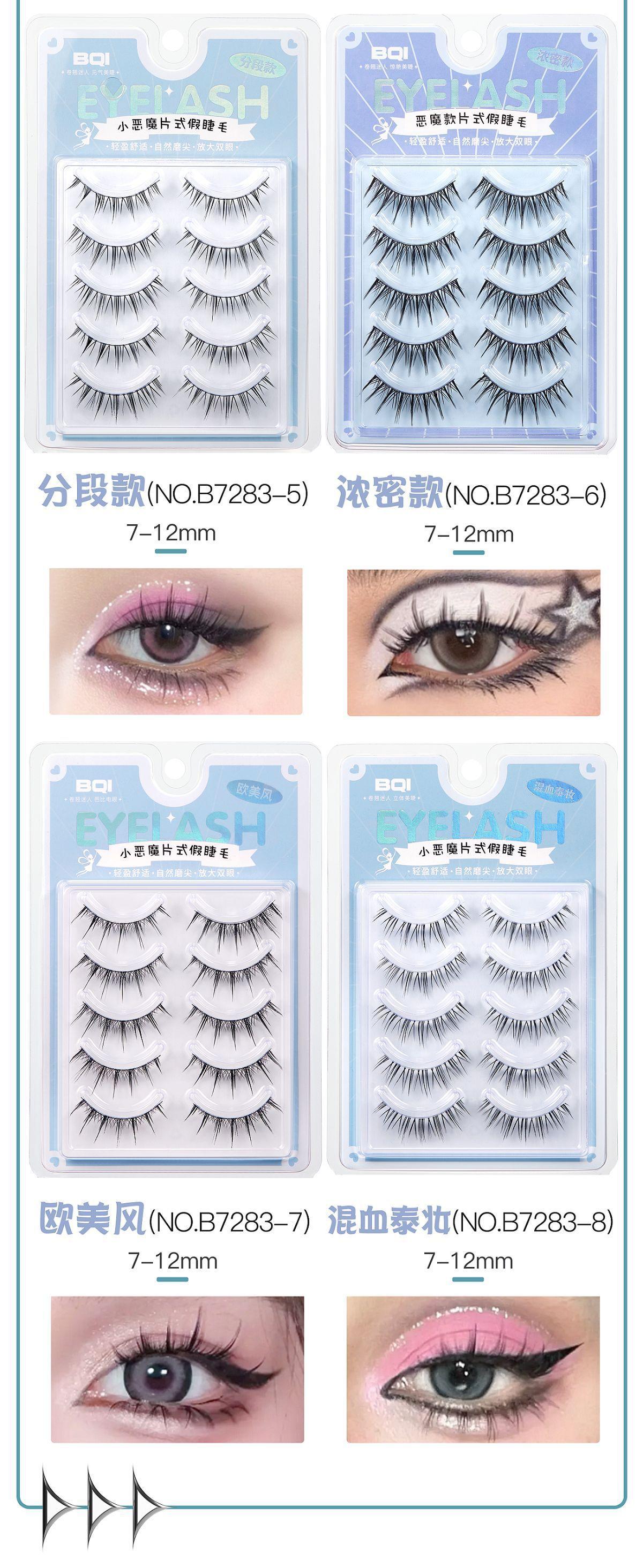 Selección estricta de pestañas postizas de tallo transparente de una pieza BQI cinco pares de pestañas gruesas de ojo de diablo pestañas enteras naturales