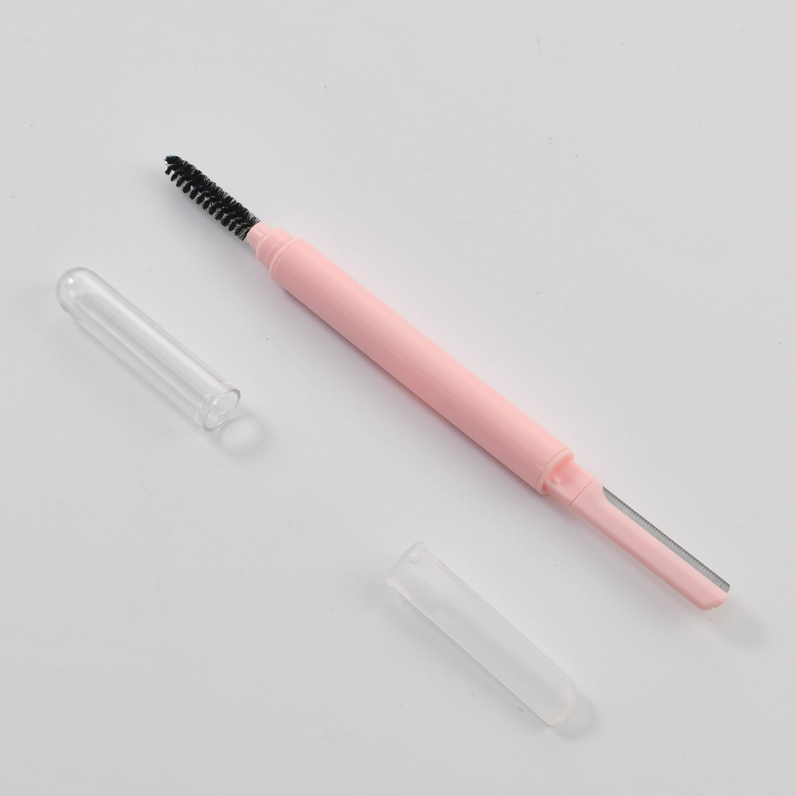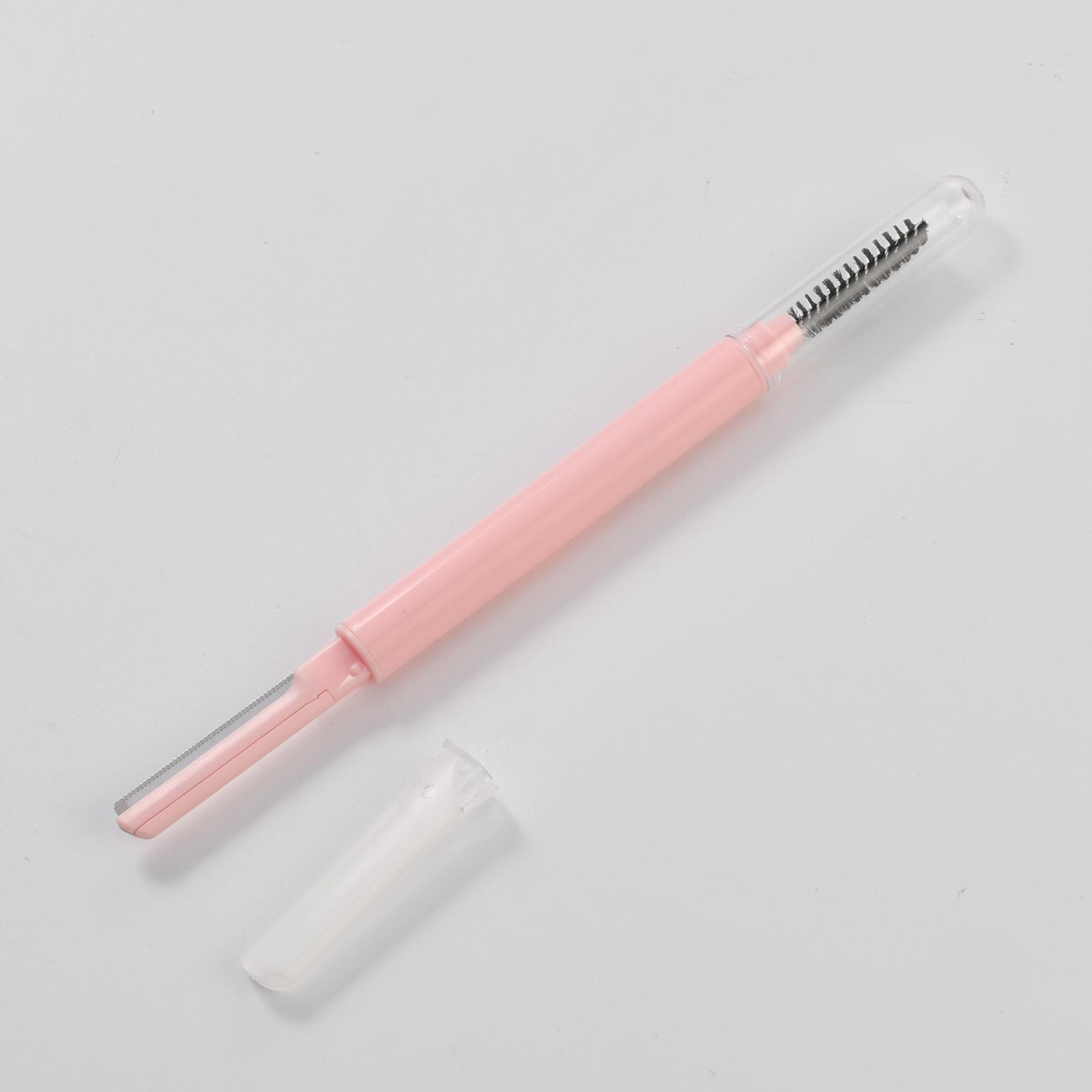 Venta directa de fábrica: peine de pestañas de plástico multifuncional de dos cabezales, cepillo para cejas, cuchilla de acero inoxidable para principiantes, recortador de cejas, raspador de cejas.