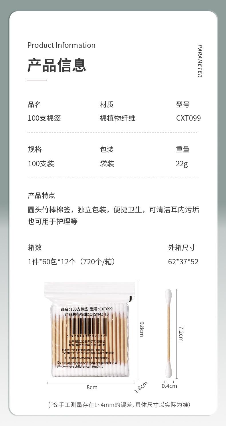 100 Piezas de Hisopos de Algodón, Empaque Neutro, Hisopos de Madera de Doble Punta, Hisopos de Algodón Desechables para Limpieza de Maquillaje, Venta al por Mayor