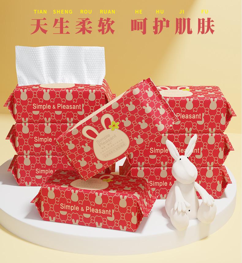 Minimalist pink leaf 50-count thickened pearl pattern tissue, White, green and blue 50 draws thickened pearl p...