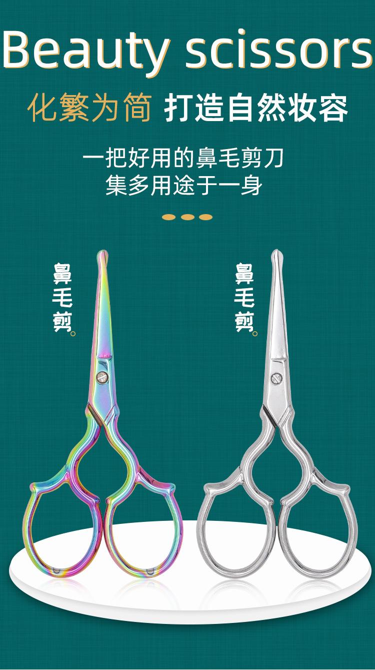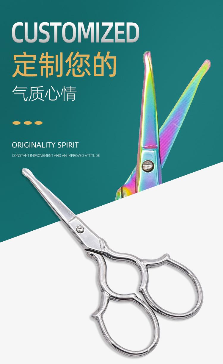 Tijeras pequeñas bordadas para el vello nasal, tijeras retro para estudiantes, mini tijeras exquisitas para el hogar, portátiles