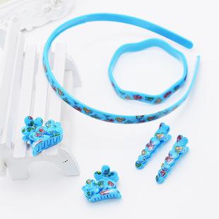 | Diadema para el cabello para niños al por mayor con estampado mixto, hebilla para la cabeza, clip, juego de pulseras, diadema para niños, princesa coreana | |