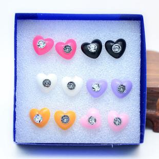 | Aretes multicolor en forma de corazón de diamante, aretes de plástico en caja, aretes de mujer simples versátiles OL de moda | |