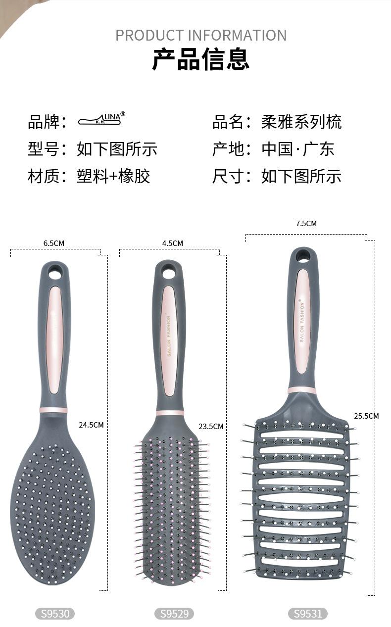 S9531 big bend hair comb (tag pack), S9530 soft and elegant hair bending comb (tag), S9529 soft and elegant ha...
