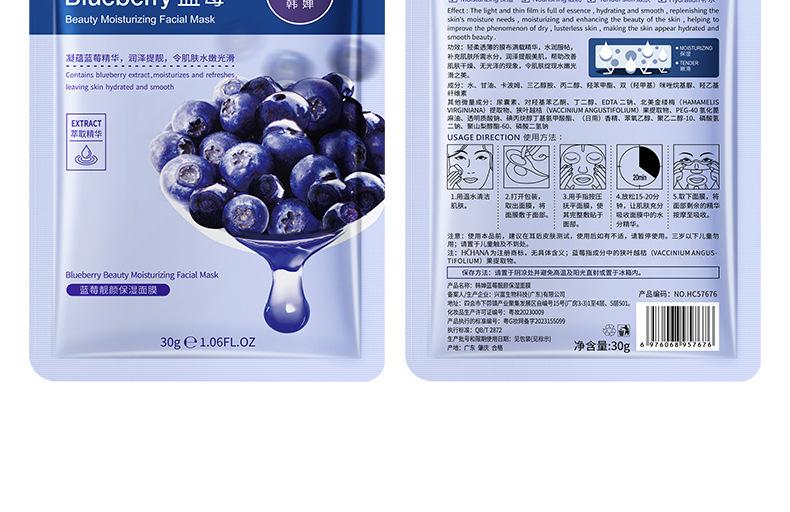 Mascarilla Hidratante Hanchan Arándano Aloe Vera Hidratante, Humectante, Calmante e Hidratante Combinación de Mascarillas para el Cuidado de las Plantas al por Mayor