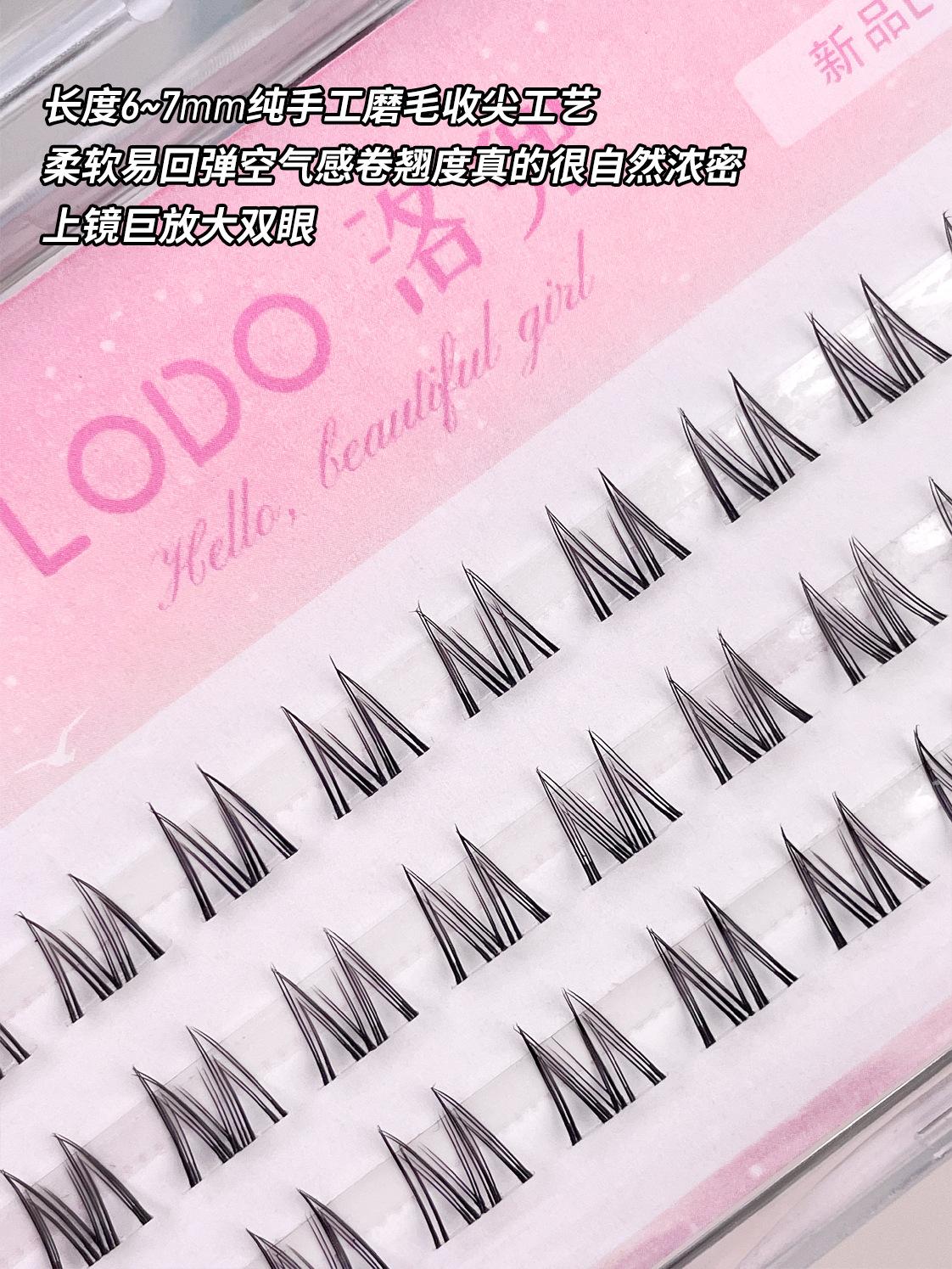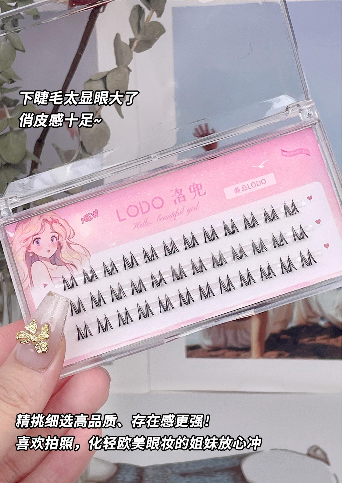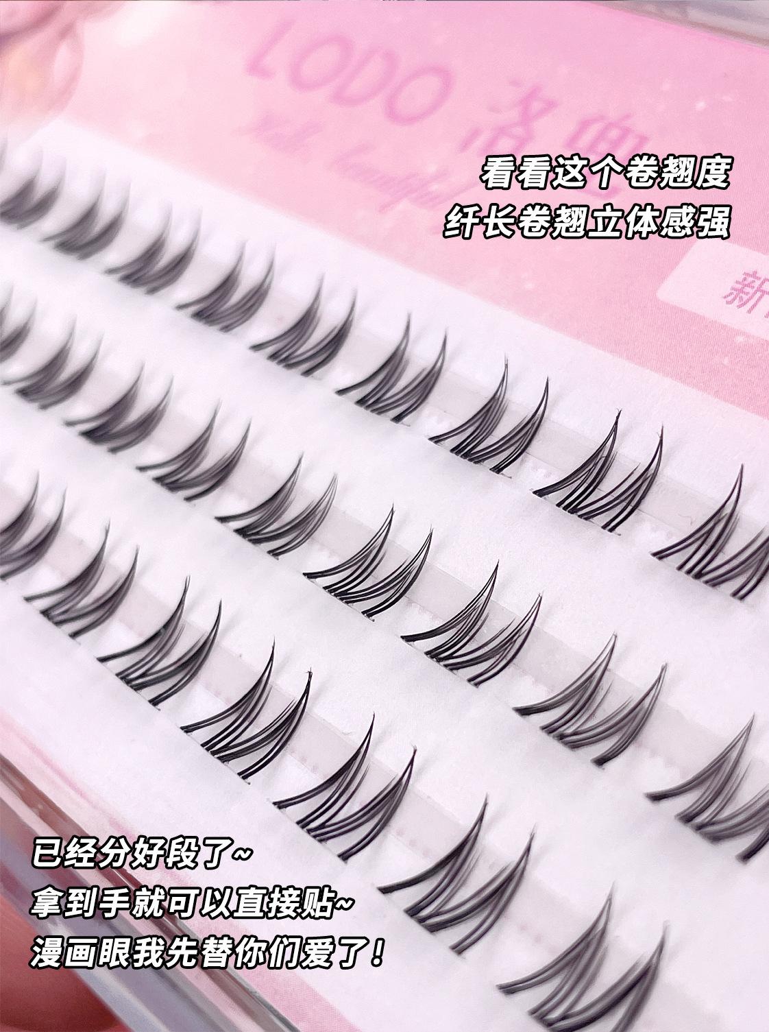 Pestañas postizas LODO Luodou con forma de llama pequeña, pestañas postizas femeninas de simulación natural, segmentadas, de un solo grupo, transparentes, de tallo suave.