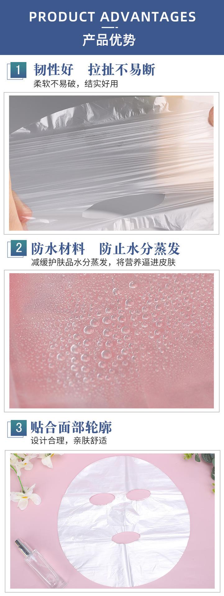Mascarilla de plástico desechable, papel para mascarilla de pasta, mascarilla para conservar la frescura, película PE para conservar la frescura del rostro, suministro de 100 fabricantes al por mayor