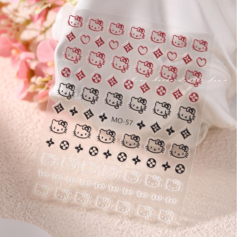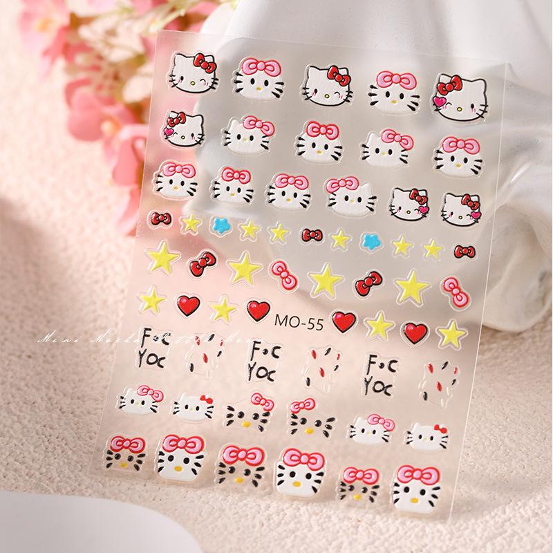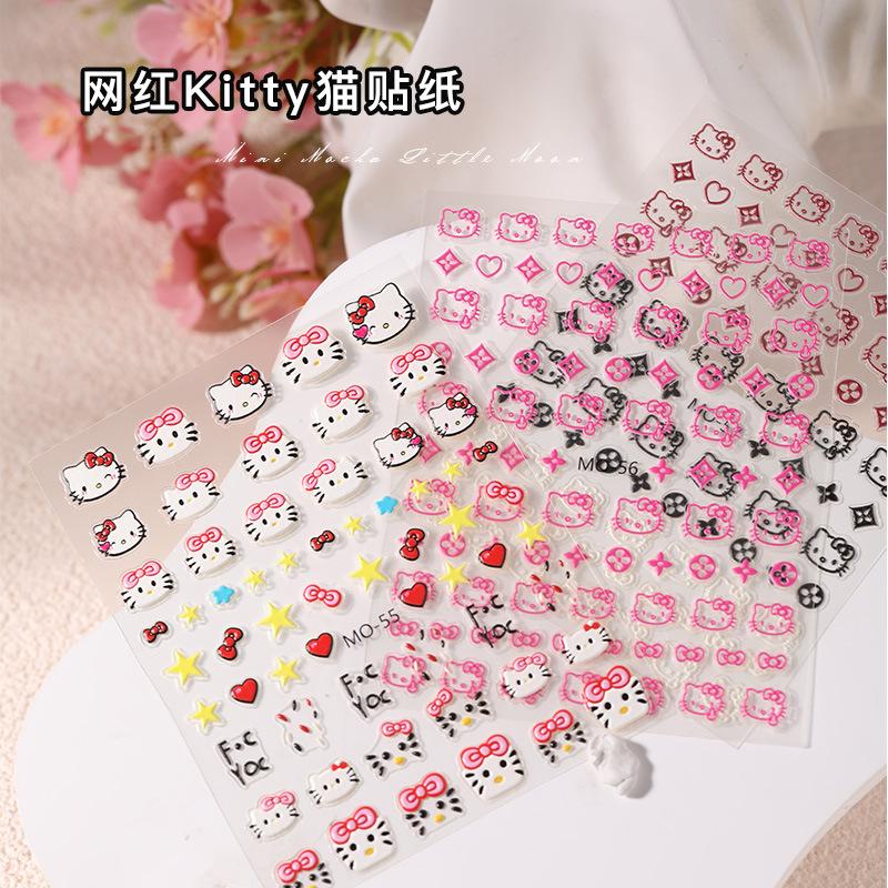 Nuevos stickers de relieve para uñas de celebridad en línea rosa gato KT uña amor estrella gato lindo 3d parche 3d venta al por mayor