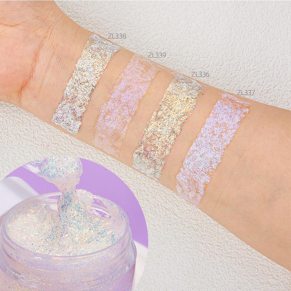 Comercio exterior gel de purpurina caliente lentejuelas cabello facial cuerpo colorido Blanco gel purpurina iluminador sombra de ojos crema maquillaje
